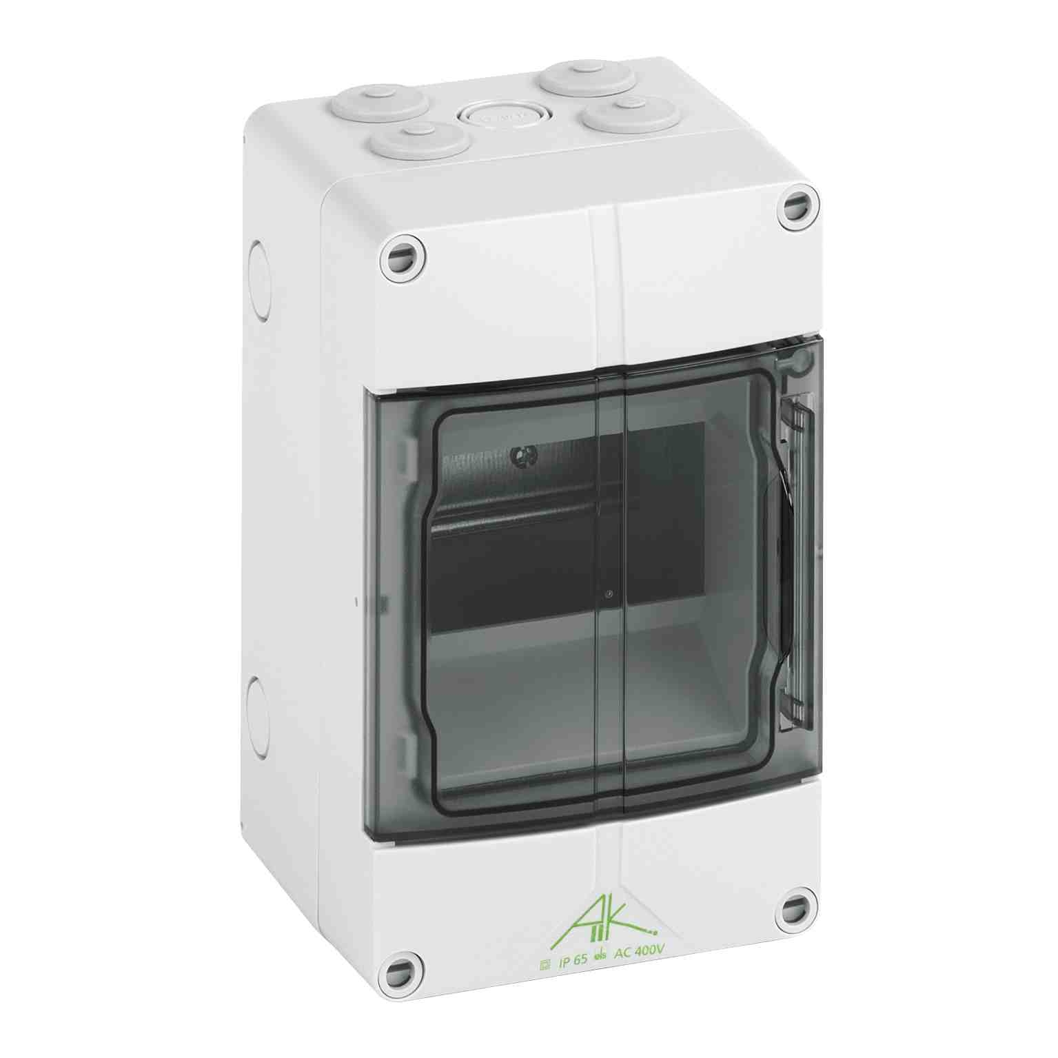 Malý rozvaděč, se stupněm krytí IP65, 1 Řada, 5 Dostupné moduly, Domezovací provozní napětí: 400V AC, Domezovací izolační napětí: 1000V AC, 1000V DC, nahoře a dole metrické předlisy pro univerzální vstup vodičů se šroubením a / nebo dvojitými membránovými vývodkami, nahoře s předmontovanými pružnými průchodkami DMS M20, s upínací lištou PE/N vždy se 2 místy upnutí 16 mm? a 3 místy upnutí 6 mm? Rozměry: 125 x 200 x 122 mm Přiložené příslušenství: Dvojitá membránová vývodka: 1x M25, Zaslepovací zátky, Krycí a popisovací pásky