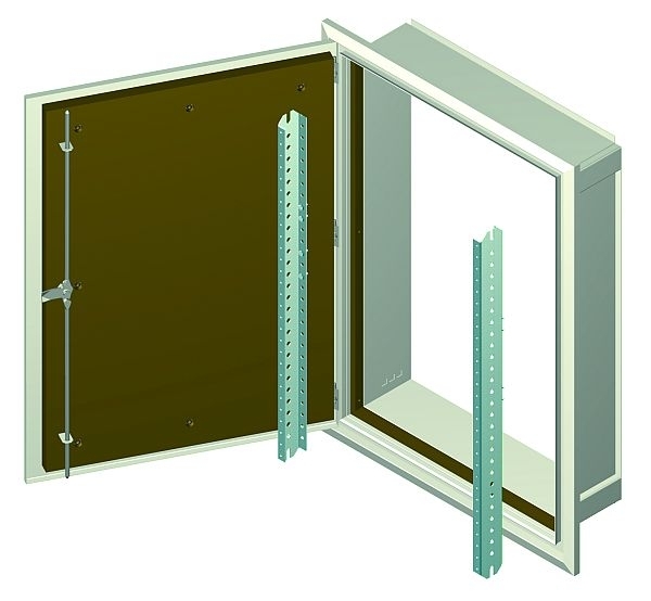 Rozvodnicová skříň DZ54-2410-EI30S pro zapuštěnou montáž, jednokřídlové dveře, neprůhledné dveře, vnitřní V x Š 1550x510, počet řad 10, rozteč 150 mm, počet modulů v řadě 24, krytí IP54, materiál : ocel-plech, požární odolnost EI30S OEZ:42729