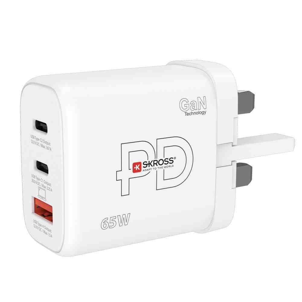 SKROSS USB A+C nabíjecí adaptér Power charger 65W GaN UK, Power Delivery, typ G *DC57UK-PD65