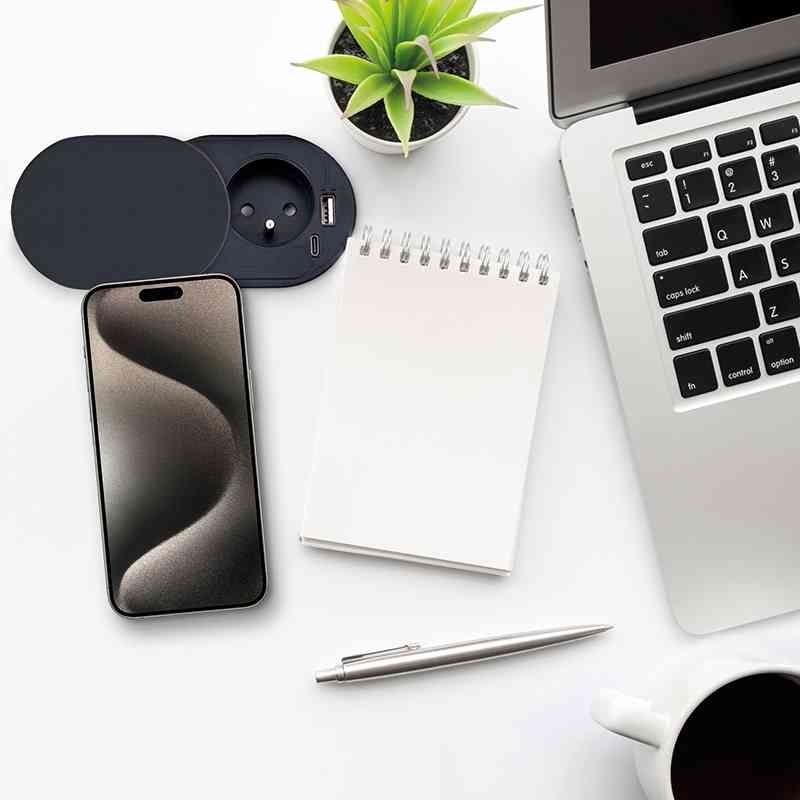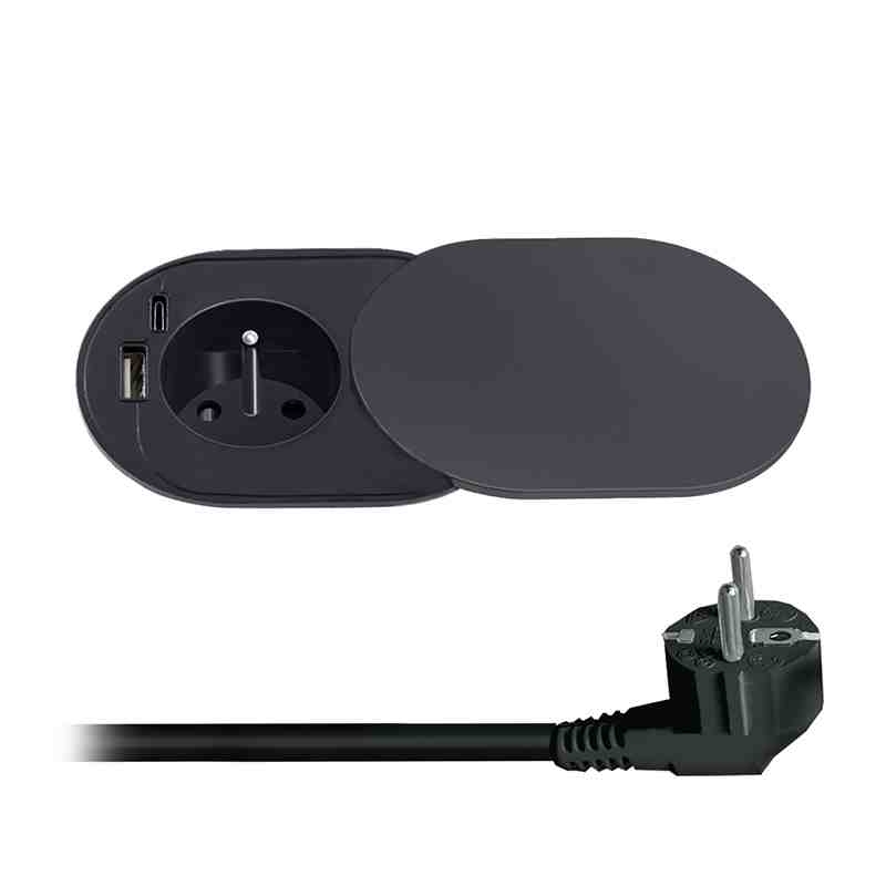 Solight 1z + USB A+C 20W PD vestavná zásuvka s posuvným víčkem, 2m, matná černá *PP124CB-PD20