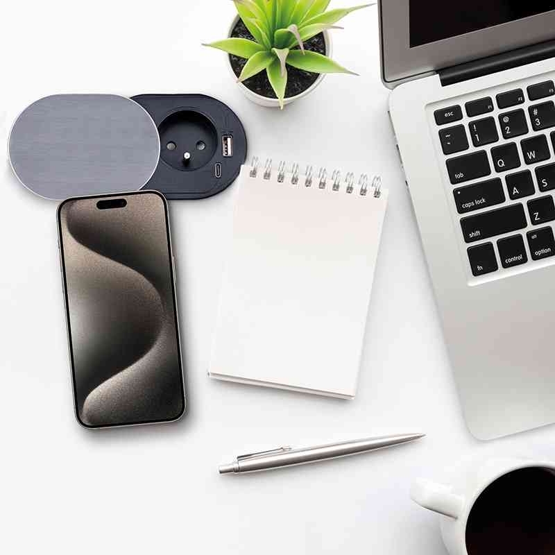 Solight 1z + USB A+C 20W PD vestavná zásuvka s posuvným víčkem, 2m, stříbrná *PP124C-PD20