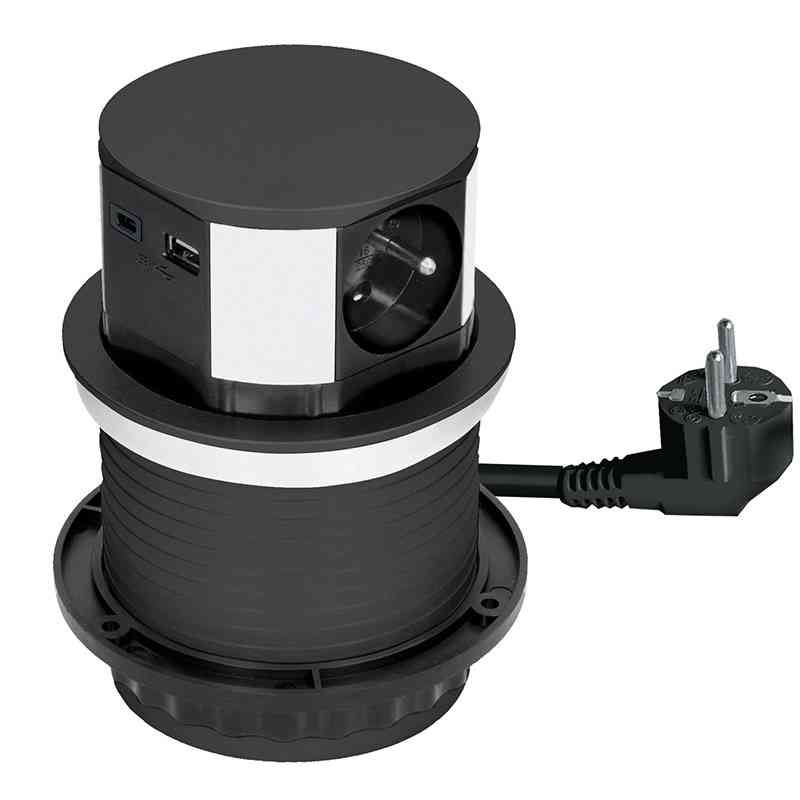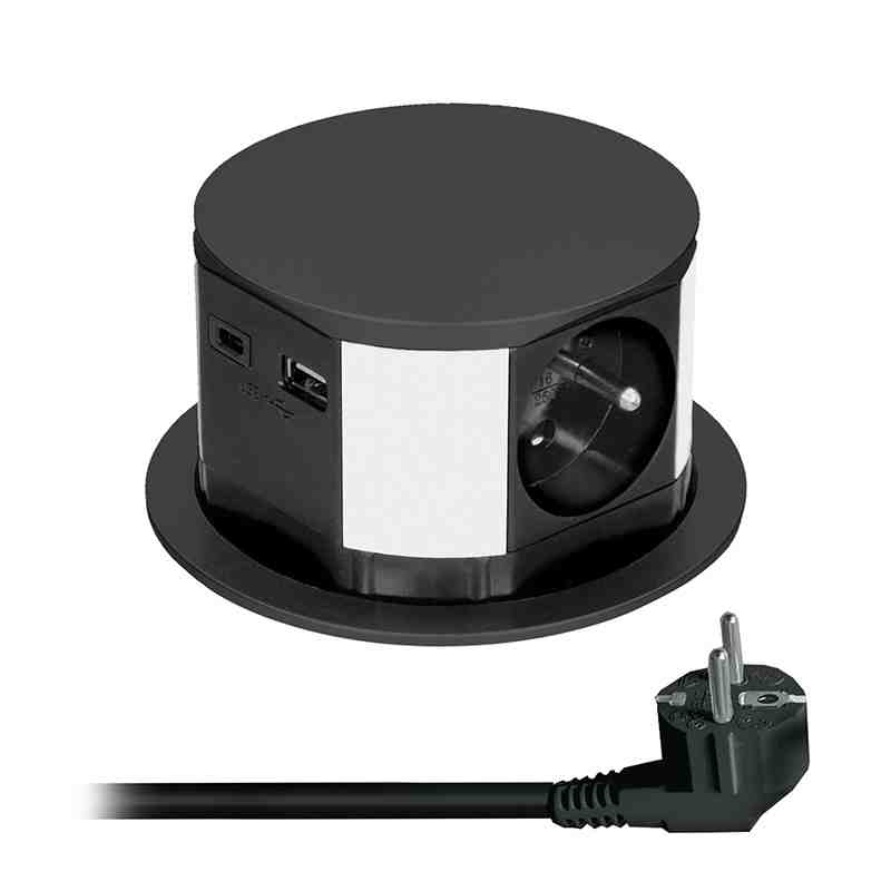 Solight 3z + USB A+C výsuvný blok zásuvek, 2m, černý *PP100USBC-B