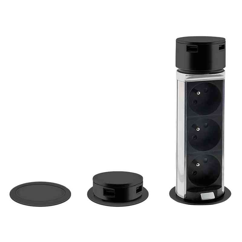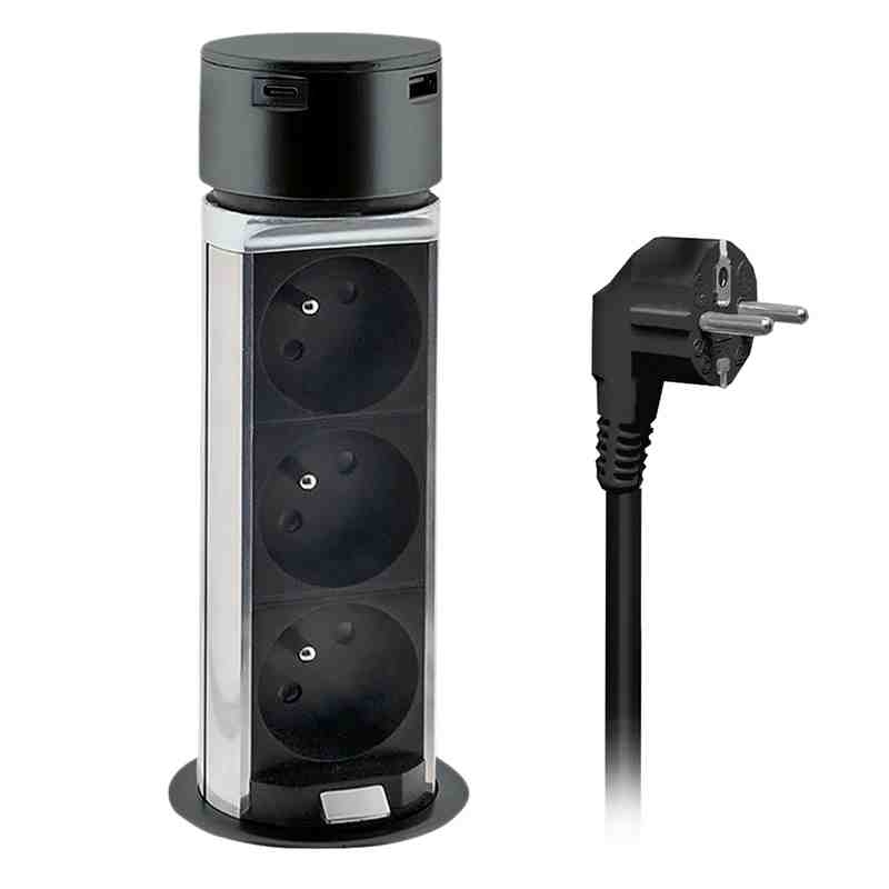 Solight 3z + USB A+C výsuvný blok zásuvek, 2m, černý *PP125USBC-B