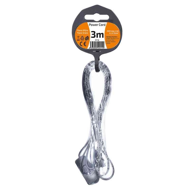 Solight flexo šňůra, 2x 0,75mm2, černá, plochá, vypínač, 3m *PF18