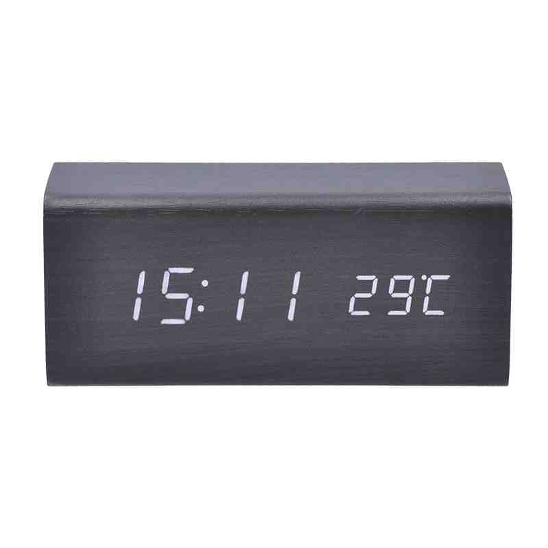 Solight hodiny s budíkem, bílé LED podsvícení, tři budíky, nastavitelná intenzita podsvícení, teploměr, dekor: černé dřevo *CA01B