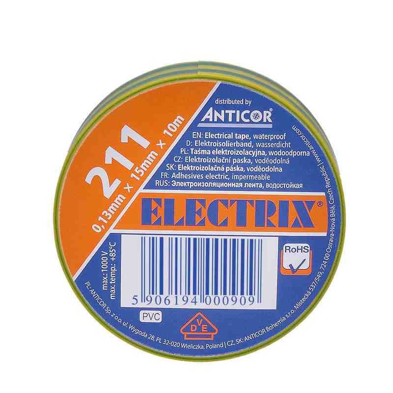 Solight izolační páska, 15mm x 0,13mm x 10m, žlutozelená *AP01