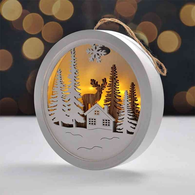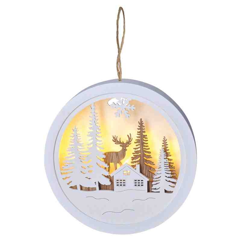 Solight LED dekorace závěsná, les a jelen, bílá a hnědá, 2x AAA *1V223-A