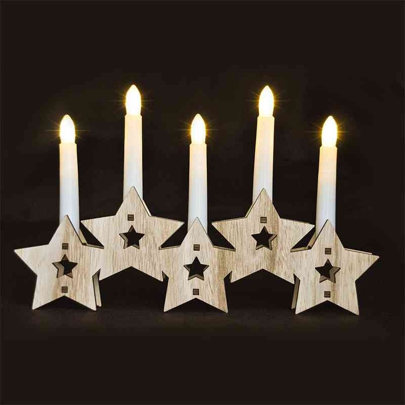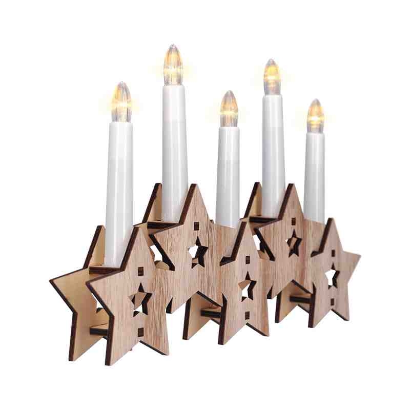 Solight LED dřevěný svícen, 5x LED, přírodní dřevo, 2x AA *1V222