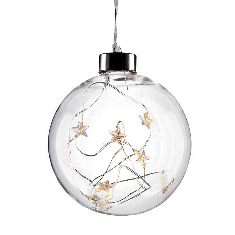 Solight LED vánoční koule skleněná, 10LED, 2x AA, IP20 *1V204