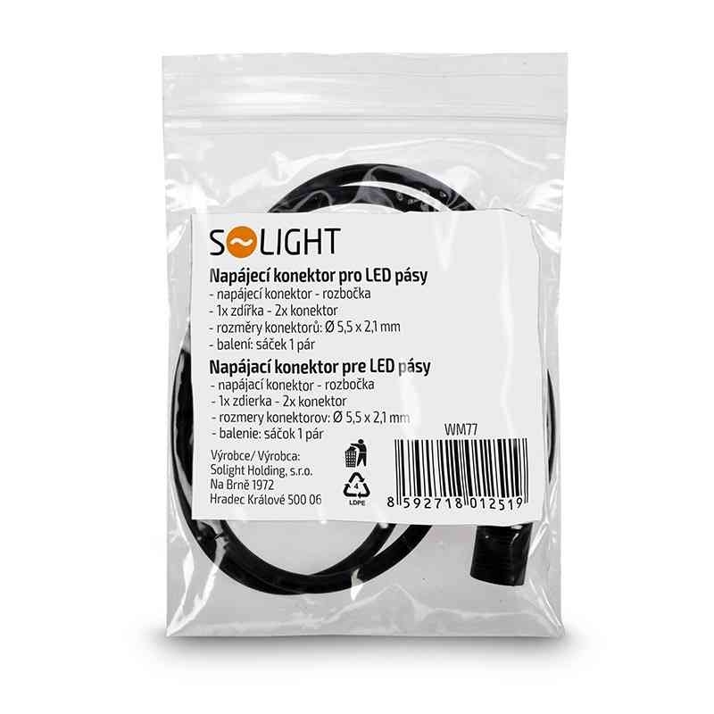 Solight napájecí konektor pro LED pásy, 5,5mm, rozbočka, 1x zdířka - 2x konektor, sáček 1 pár *WM77