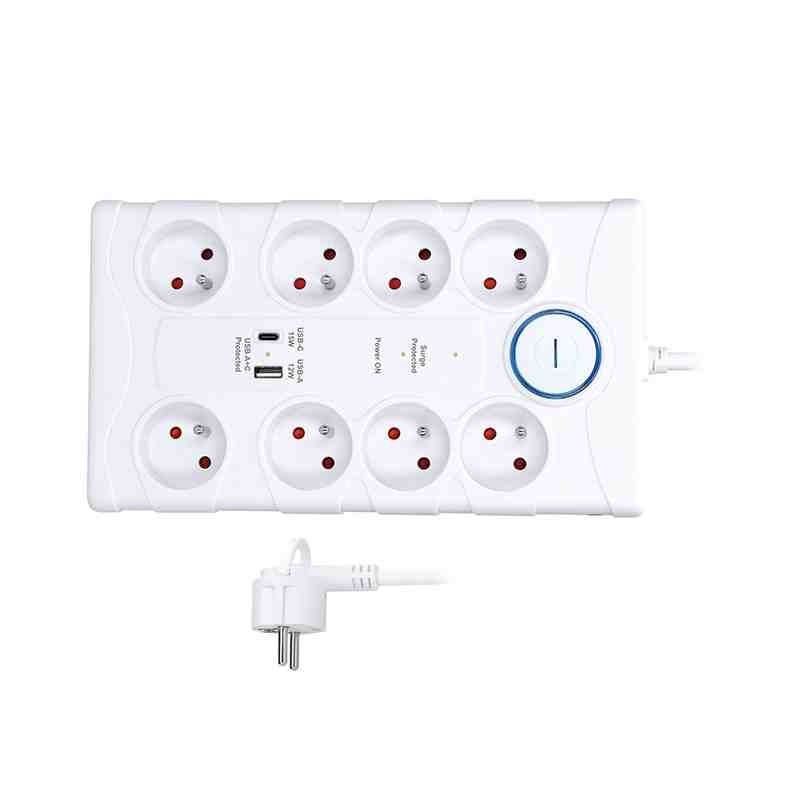 Solight přepěťová ochrana, 8z, USB A+C, 2m, bílá *PO80