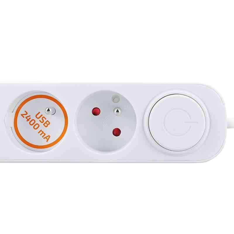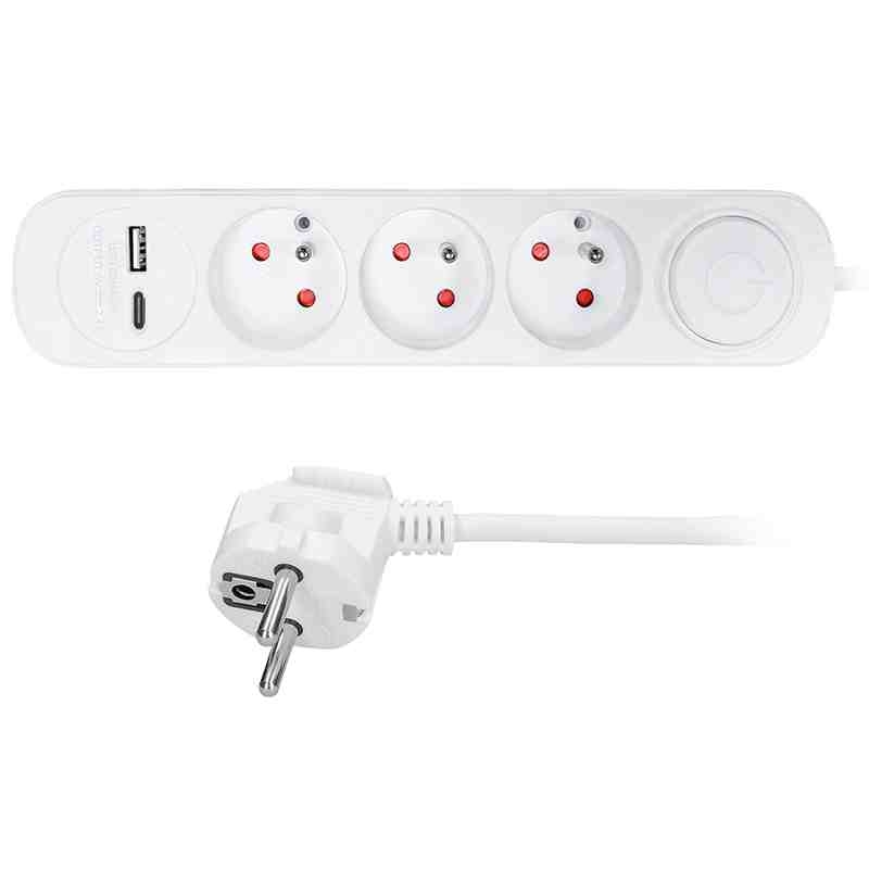 Solight prodlužovací přívod 3 zásuvky, s USB A+C nabíječka 12W, 2m, 3 x 1mm2, bílý, vypínač *PP111USBC