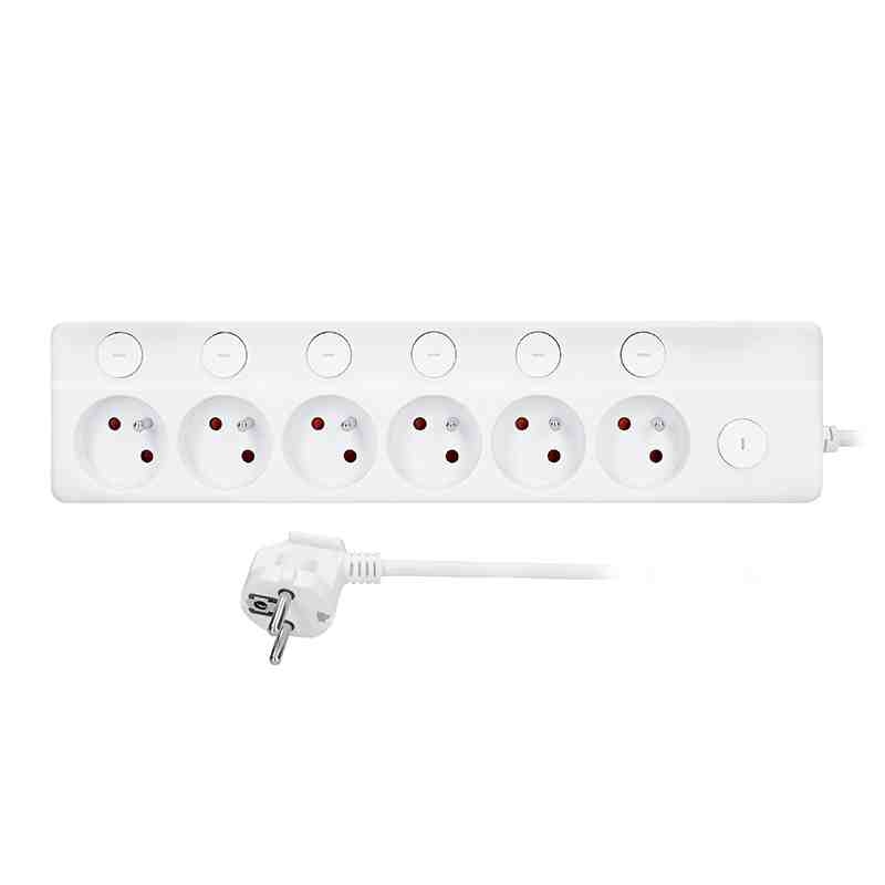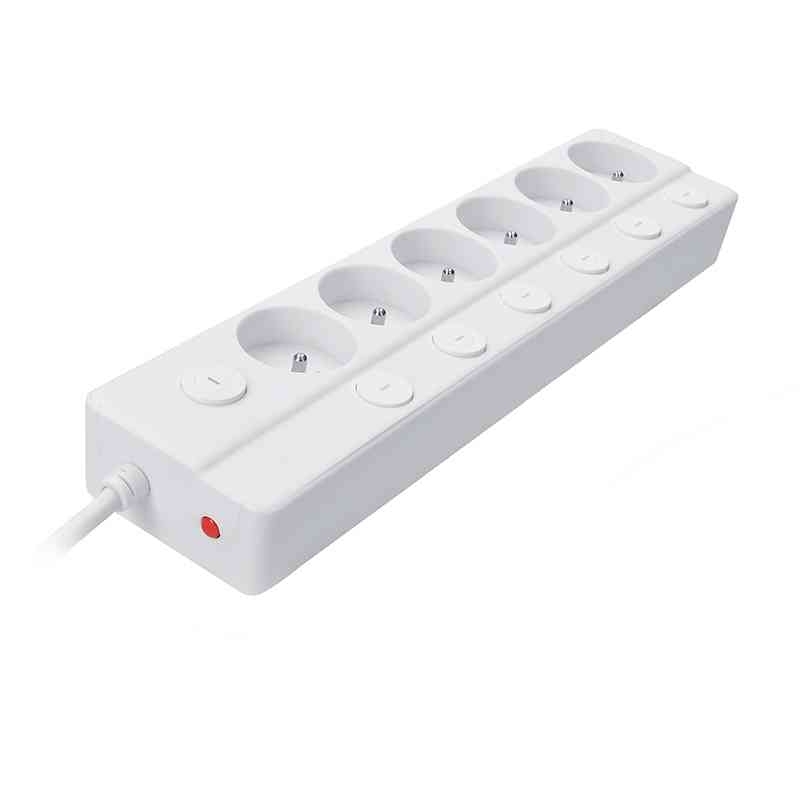 Solight prodlužovací přívod 6 zásuvek, 2m, 3 x 1mm2, bílý, 6+1 vypínač *PP160