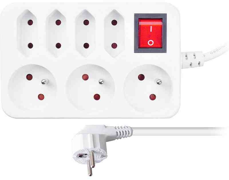 Solight prodlužovací přívod, 7 zásuvek, bílý, vypínač, 2m *PP141