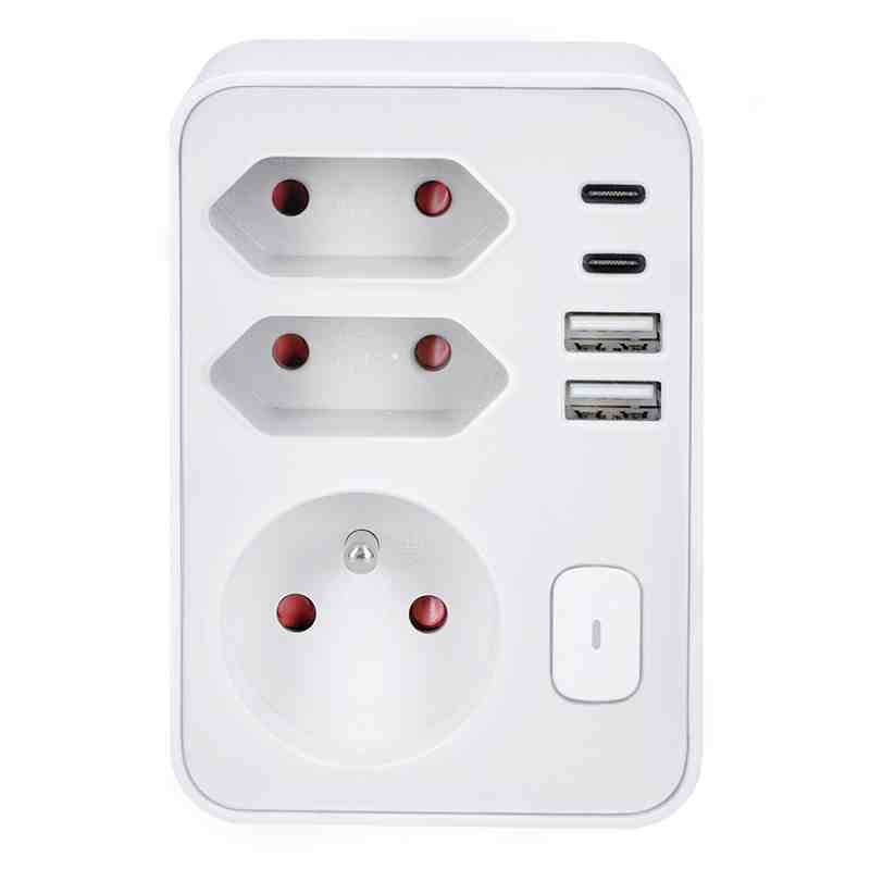 Solight rozbočka, 1x 16A + 2x 2,5A, 2xUSB A+C, bílá, vypínač *P109C