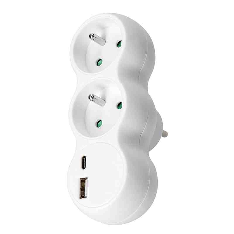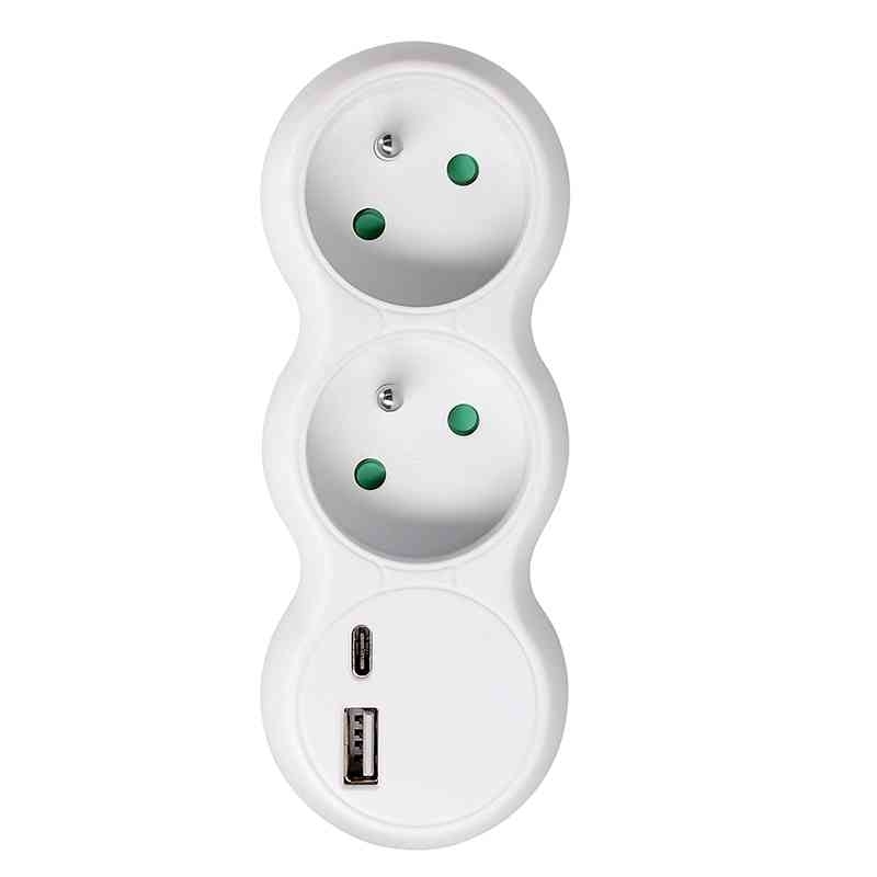 Solight rozbočka s USB A+C nabíječkou, 2 x 10A, bílá *P100USBC