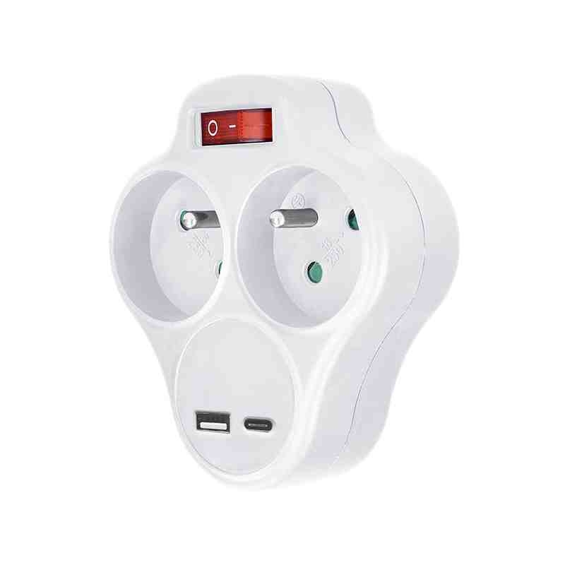 Solight rozbočka s USB A+C rychlonabíječkou 20W PD, 2 x 10A, bílá, vypínač *P99USBC-PD20
