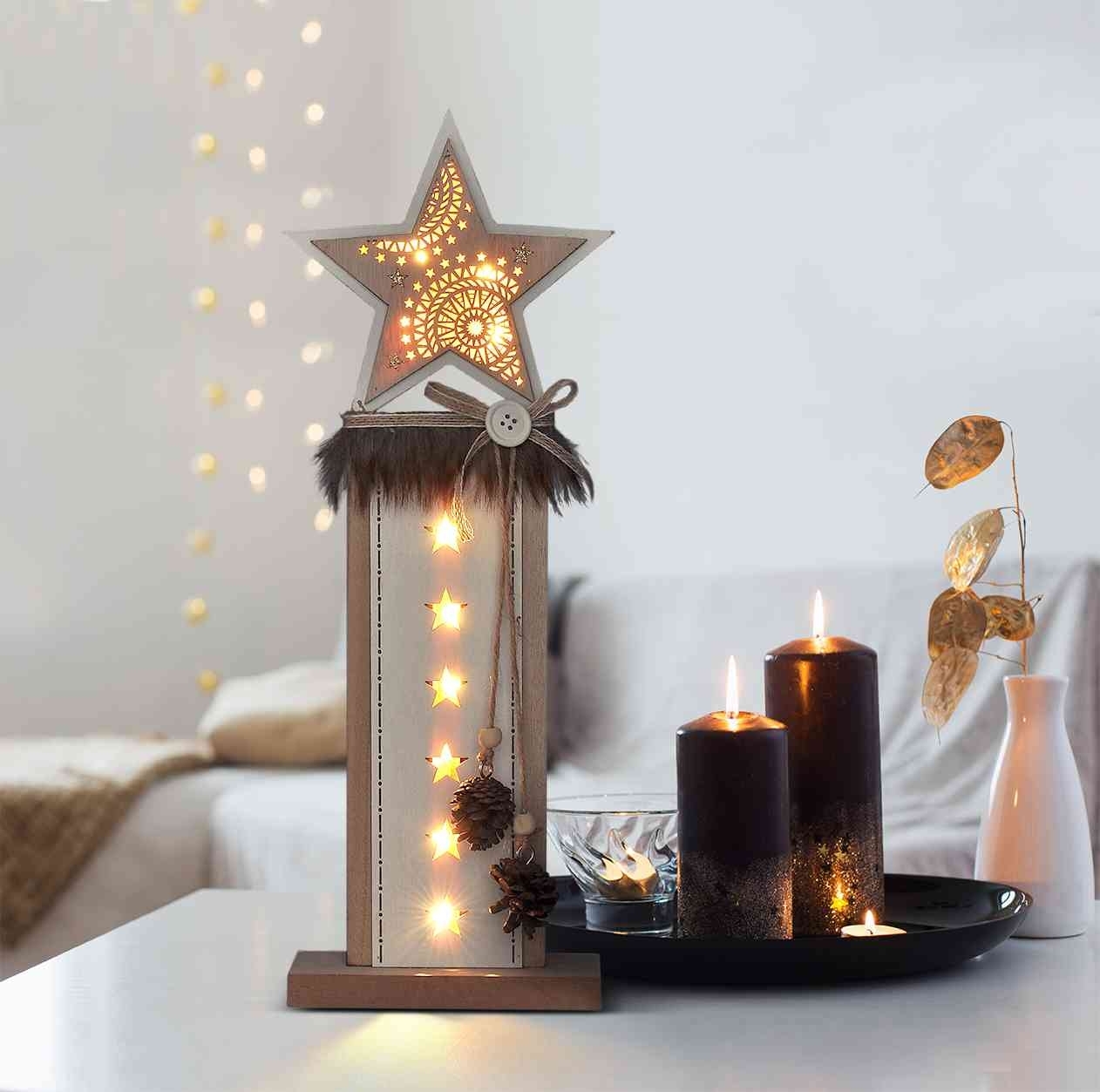 Solight vánoční LED dřevěná dekorace, hvězda, 2x AA *1V237