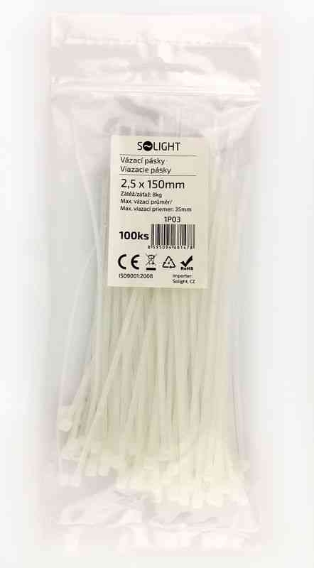 Solight vázací nylonové pásky, 2,5 x 150mm, natural, 100ks *1P03