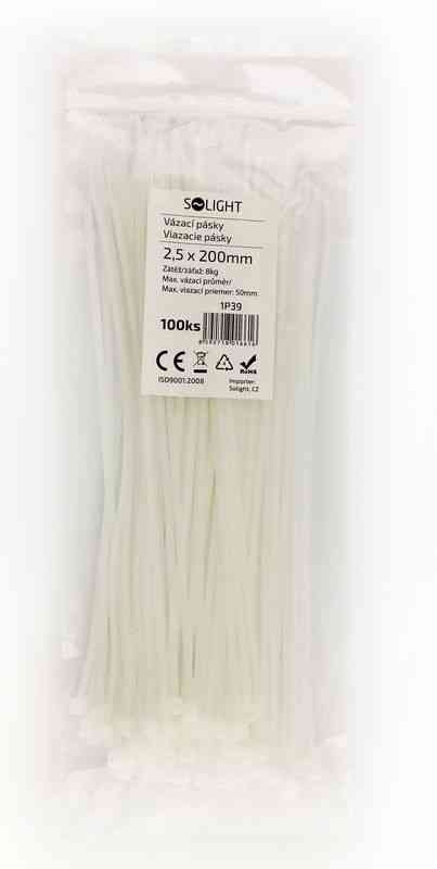 Solight vázací nylonové pásky, 2,5 x 200mm, natural, 100ks *1P39