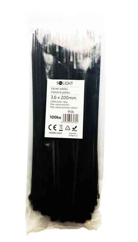 Solight vázací nylonové pásky, 3,6 x 200mm, černá, 100ks *1P26