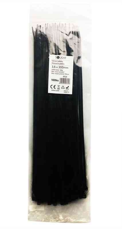 Solight vázací nylonové pásky, 3,6 x 300mm, černá, 100ks *1P29