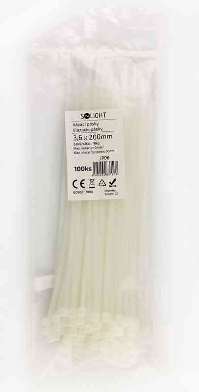 Solight vázací nylonové pásky, barva natural, 100ks, 3,6 x 200mm *1P06