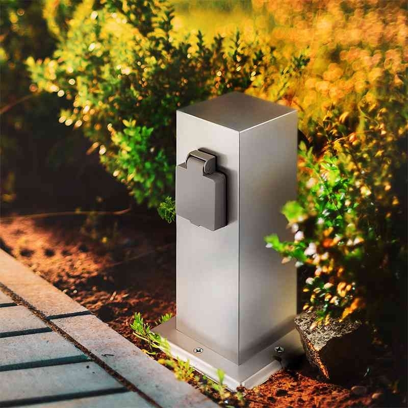 Solight zahradní sloupek IP44, nerez ocel, 2 zásuvky, hranol, stříbrný *PG11