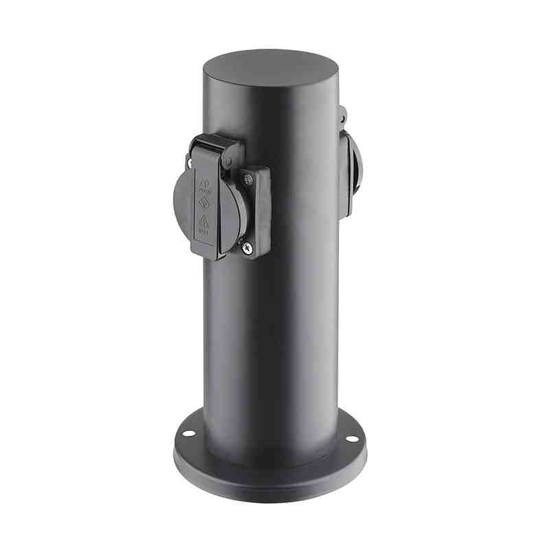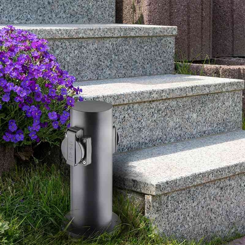 Solight zahradní sloupek IP44, nerez ocel, 2 zásuvky, válec, černý *PG10B