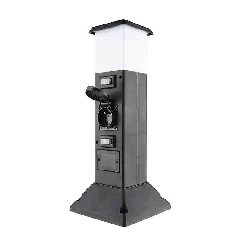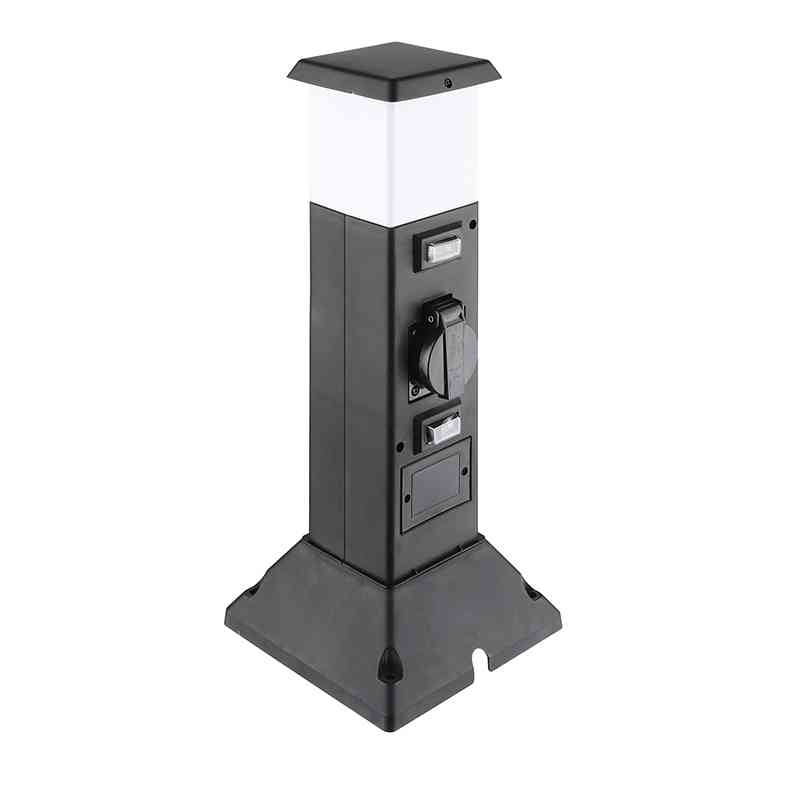 Solight zahradní sloupek IP44 s LED osvětlením, plast, 2 zásuvky, hranol, černý *PG05