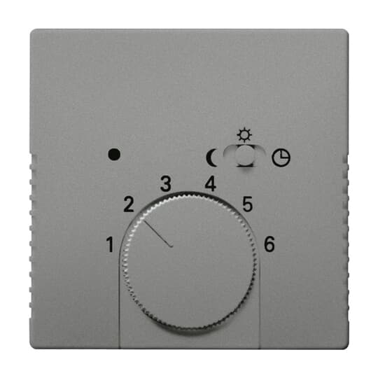Kryt termostatu prostorového, s otočným ovládáním; metalická šedá; 1795-803 Vhodné pro designy z vypínačových řad ABB : S,Ax Objednací číslo : 2CKA001710A3848