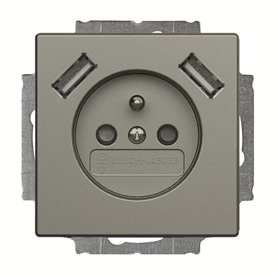 Zásuvka 1násobná s kolíkem, s clonkami, s nabíjením 2x USB; metalická šedá; 20 MUCB2USB-803-500 Vhodné pro designy z vypínačových řad ABB : S,Ax Objednací číslo : 2CKA002017A1892