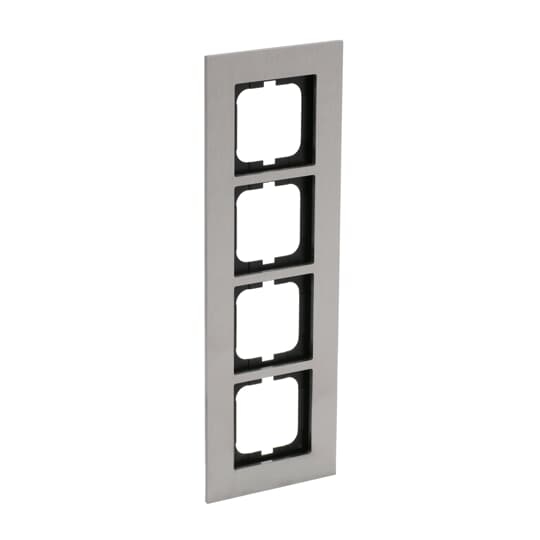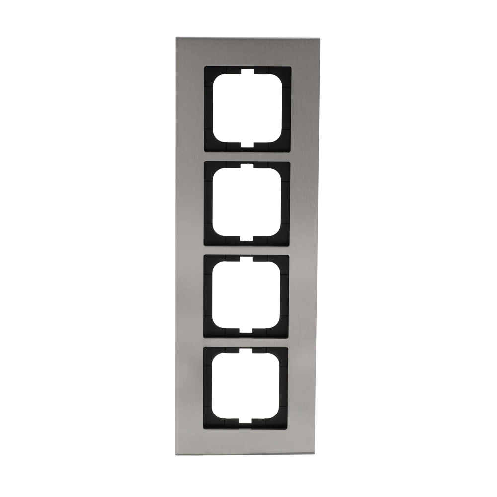 Rámeček čtyřnásobný, pro vodorovnou i svislou montáž; ušlechtilá ocel; 1724-860 Vhodné pro designy z vypínačových řad ABB : SC Objednací číslo : 2CKA001754A4257