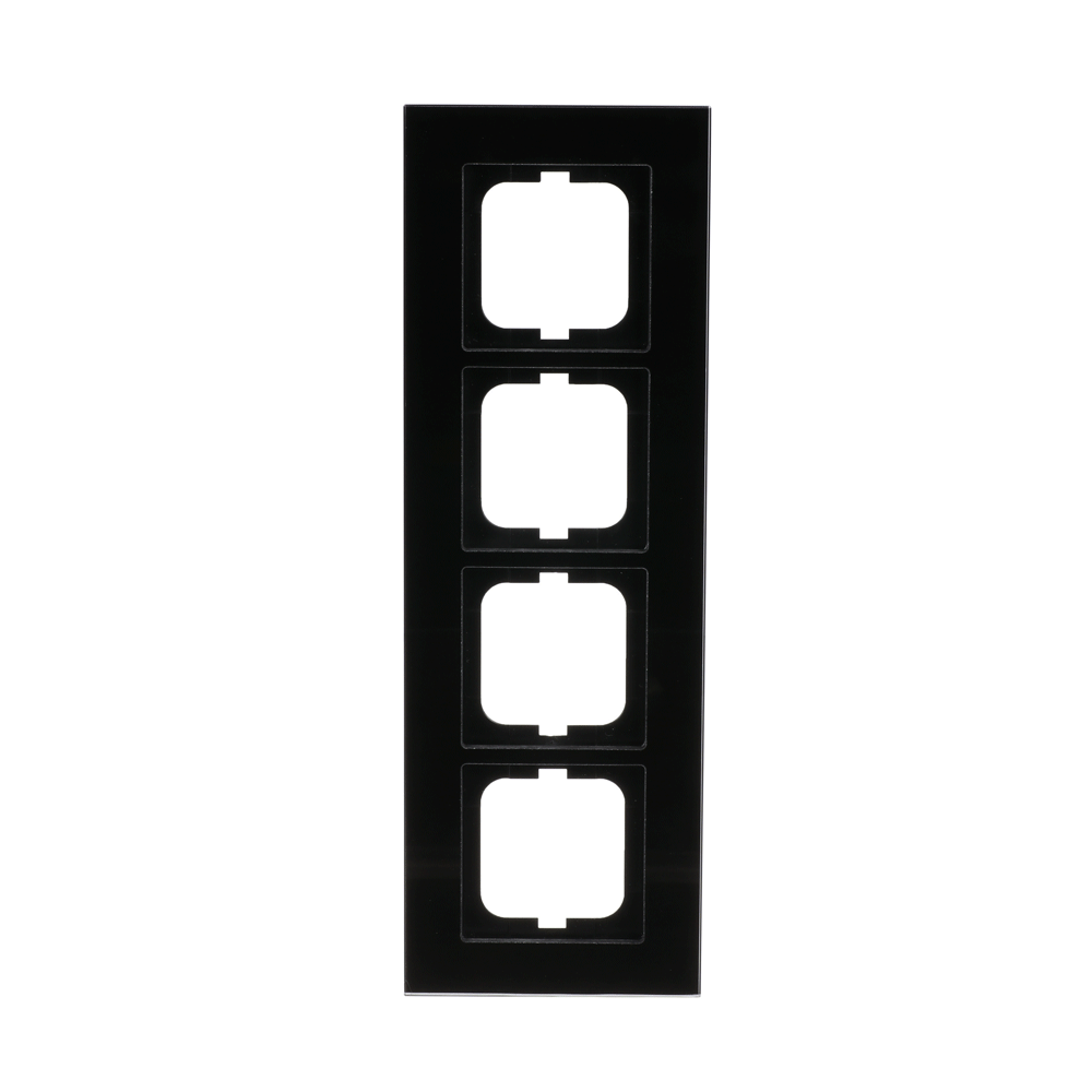 Rámeček čtyřnásobný, pro vodorovnou i svislou montáž; černé sklo; 1724-825 Vhodné pro designy z vypínačových řad ABB : SC Objednací číslo : 2CKA001754A4325