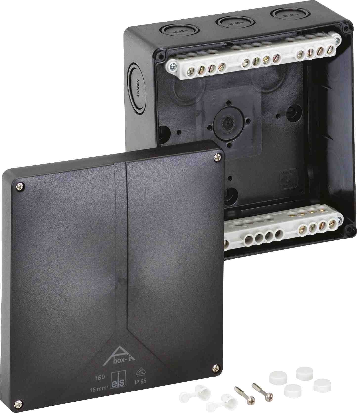 Spelsberg Abox-i 160-16?/sw Rozbočovací krabice, druh krytí IP65, max. 16?, rázová houževnatost IK08, třída ochrany II, Ui 690V AC, DLG, DNV, VDE, bez obsahu halogenů *49141601