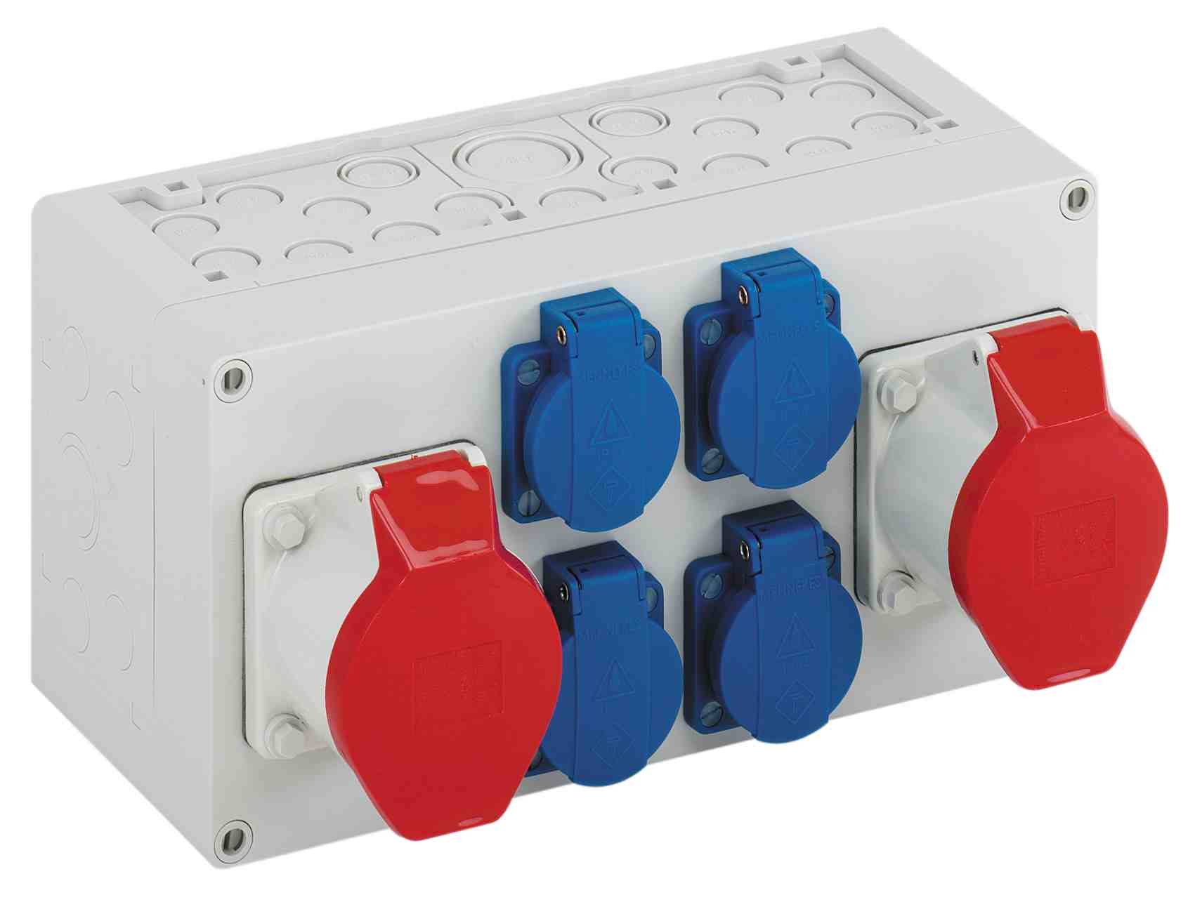 Zásuvková kombinace, se stupněm krytí IP44, s vestavěnými, předem zapojenými zásuvkami, vysoká mechanická zatížitelnost, odolná vůči extrémním teplotám, kombinovatelná, bez halogenů, vybaveny: 4 x SCHUKO® zásuvka (na přední straně), 230 V 2 x Zásuvka CEE (na přední straně) 32 A, 400 V  Rozměry: 300 x 150 x 132 mm Přiložené příslušenství: Dvojitá membránová vývodka: 1x M20, 1x M25, 1x M32, Vývodka: 1x M40, Zaslepovací zátky, Krycí a popisovací pásky