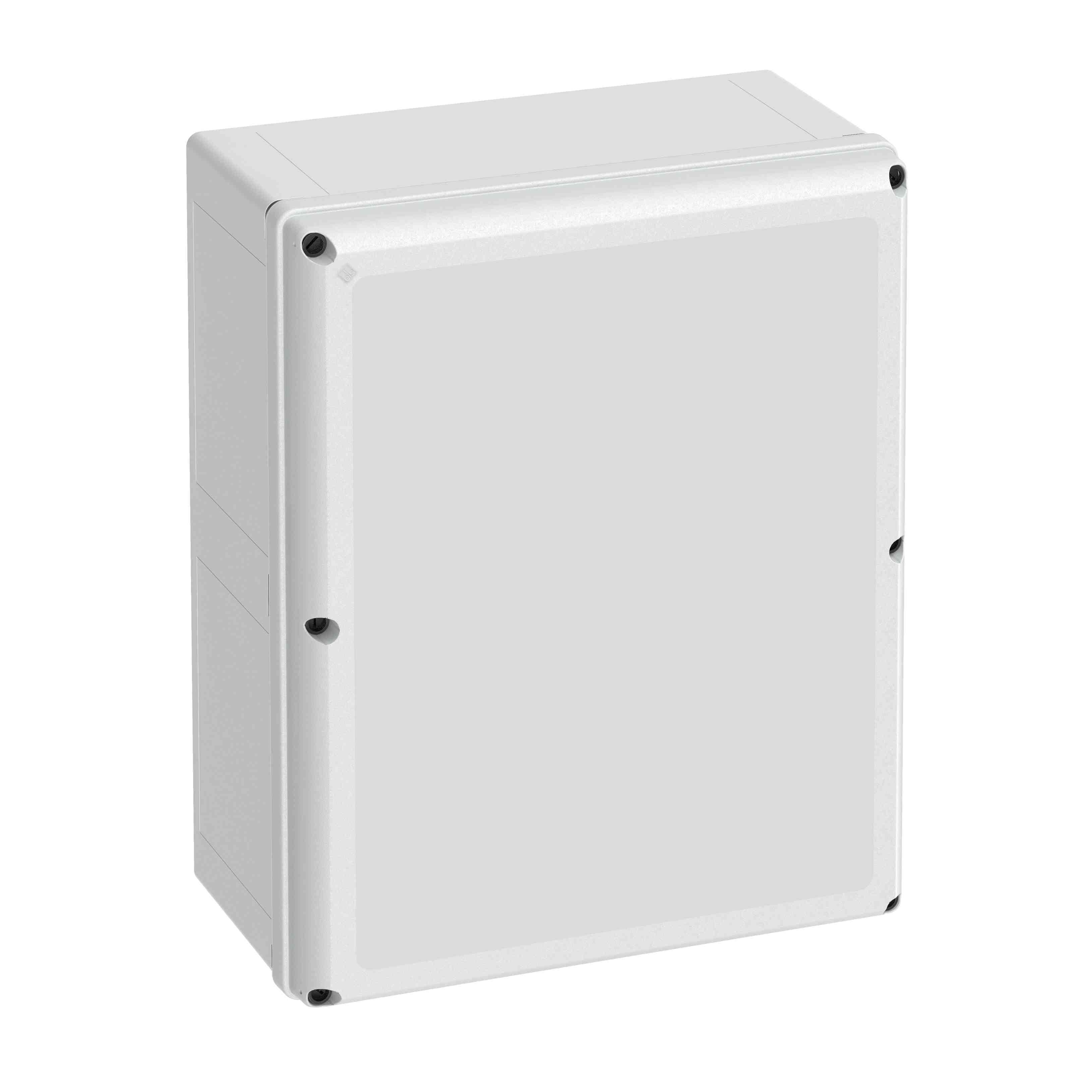 Prázdná skříň - průmyslová kvalita, vhodné pro instalaci v zátěžovém prostředí a v nechráněném venkovním prostředí, Krabice: polykarbonát vyztužený skleněnými vlákny, šedá, podobně RAL 7035, Víko: Polykarbonát, s šedým víkem Rozměry: 400 x 500 x 226 mm