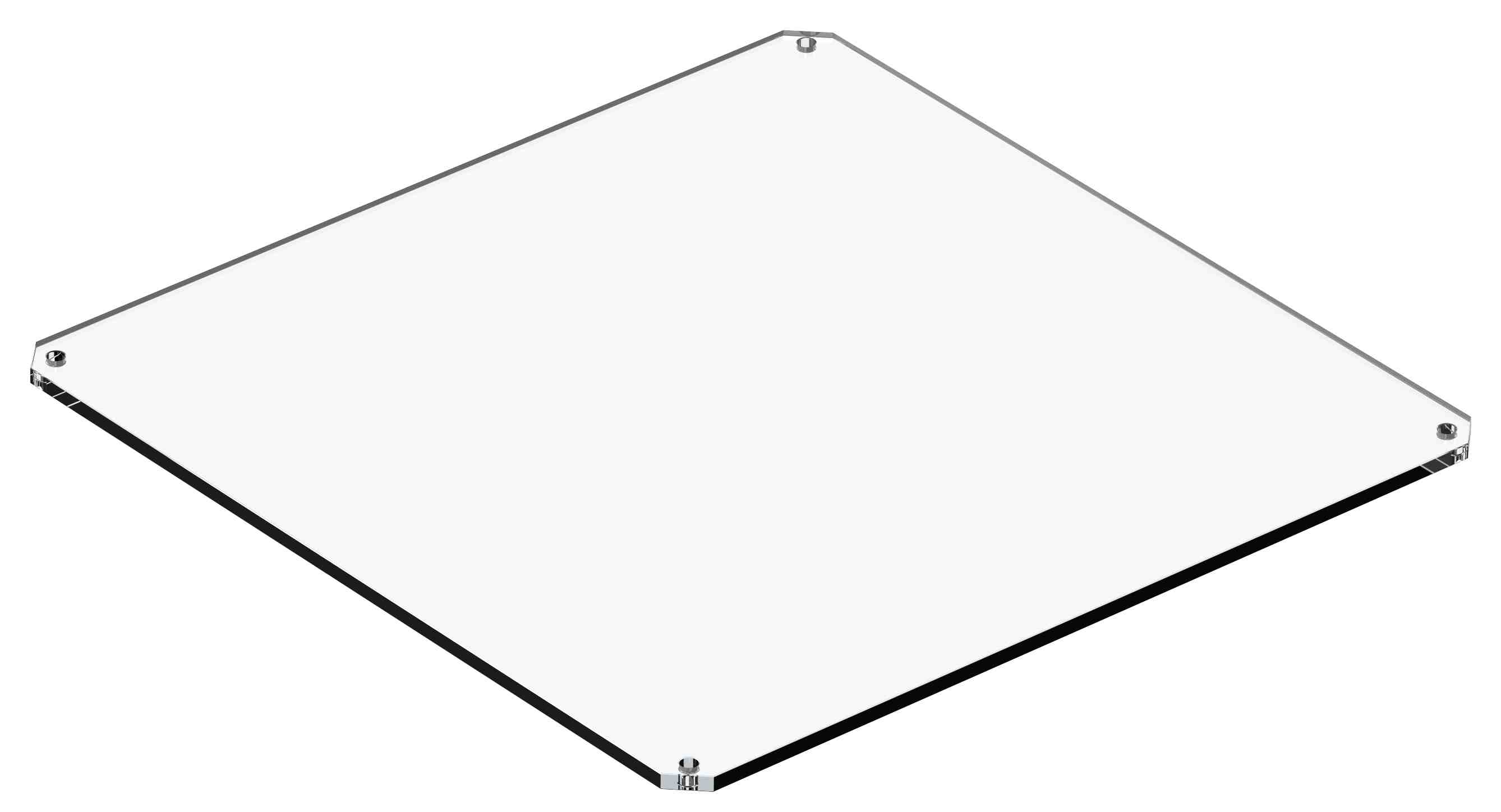 Vestavná deska z čirého transparentního polykarbonátu pro rám skříňových rozvaděčů GEOS, vč. upevňovacích šroubů, k individuálnímu použití, např. k ochraně vestaveb nacházejících se v krabici při současné viditelnosti, tloušťka materiálu: 4 mm, pro GEOS-S 3030-18/-22 Rozměry: 231 x 231 x 4 mm