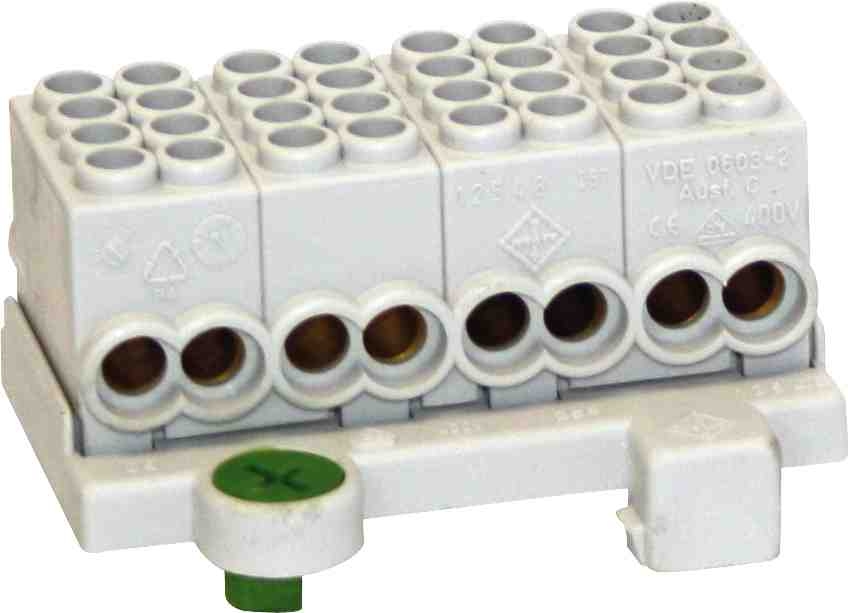 Odbočovací svorka hlavního vedení se 4 místy upnutí 1,5-25 mm? na pól, 4 póly - chráněno před dotykem prstem Rozměry: 50 x 50 x 100 mm