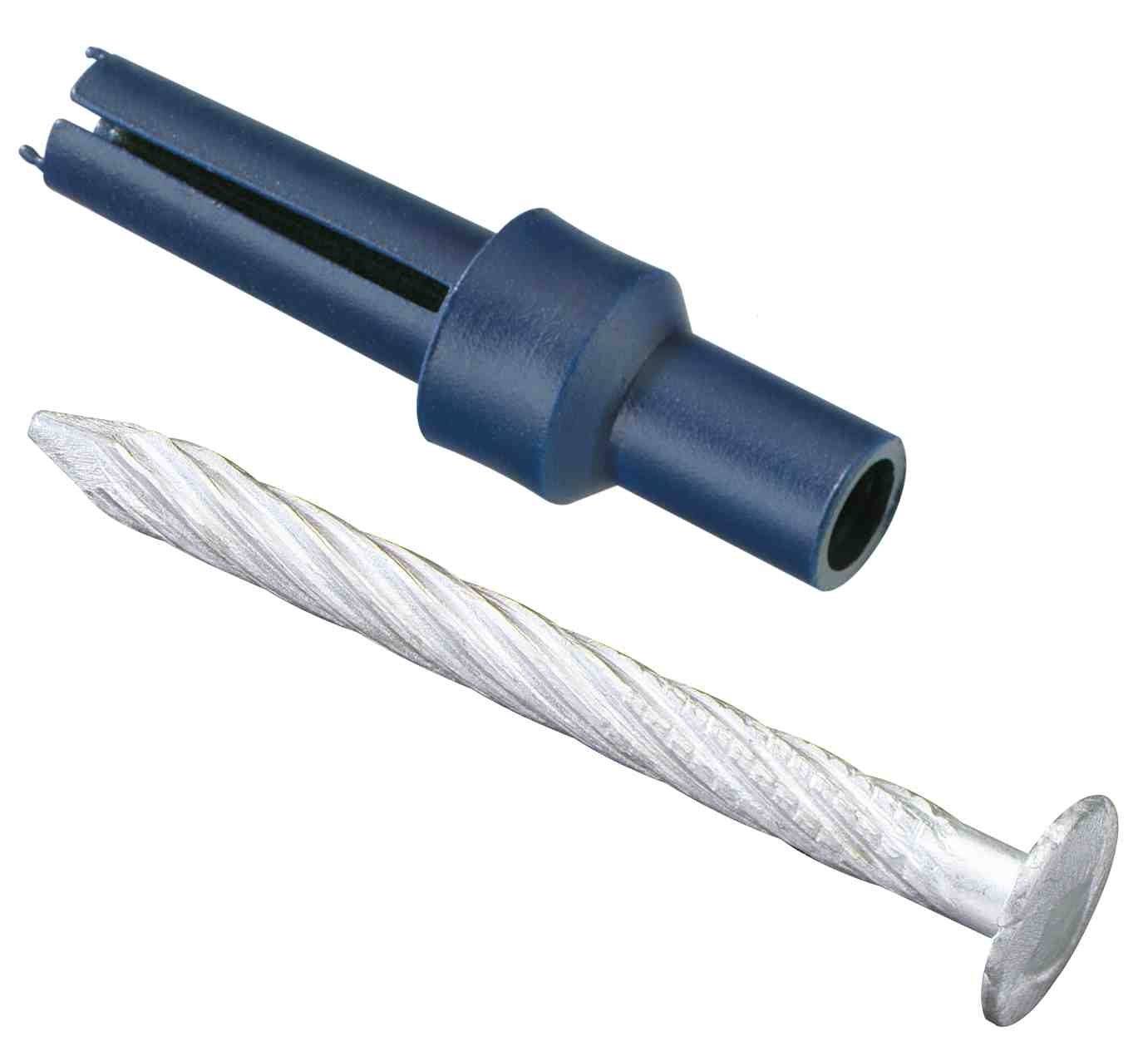 Připevňovací prostředek pro ocelové bednění, Rozpěrný šroub, hliník 40 mm, s plastovou hmoždinkou pro připevnění krabic na ocelové bednění (vrt 5,5 mm), velmi osvědčený u tunelového bednění Rozměry: 8,4 x 30 x 8,4 mm