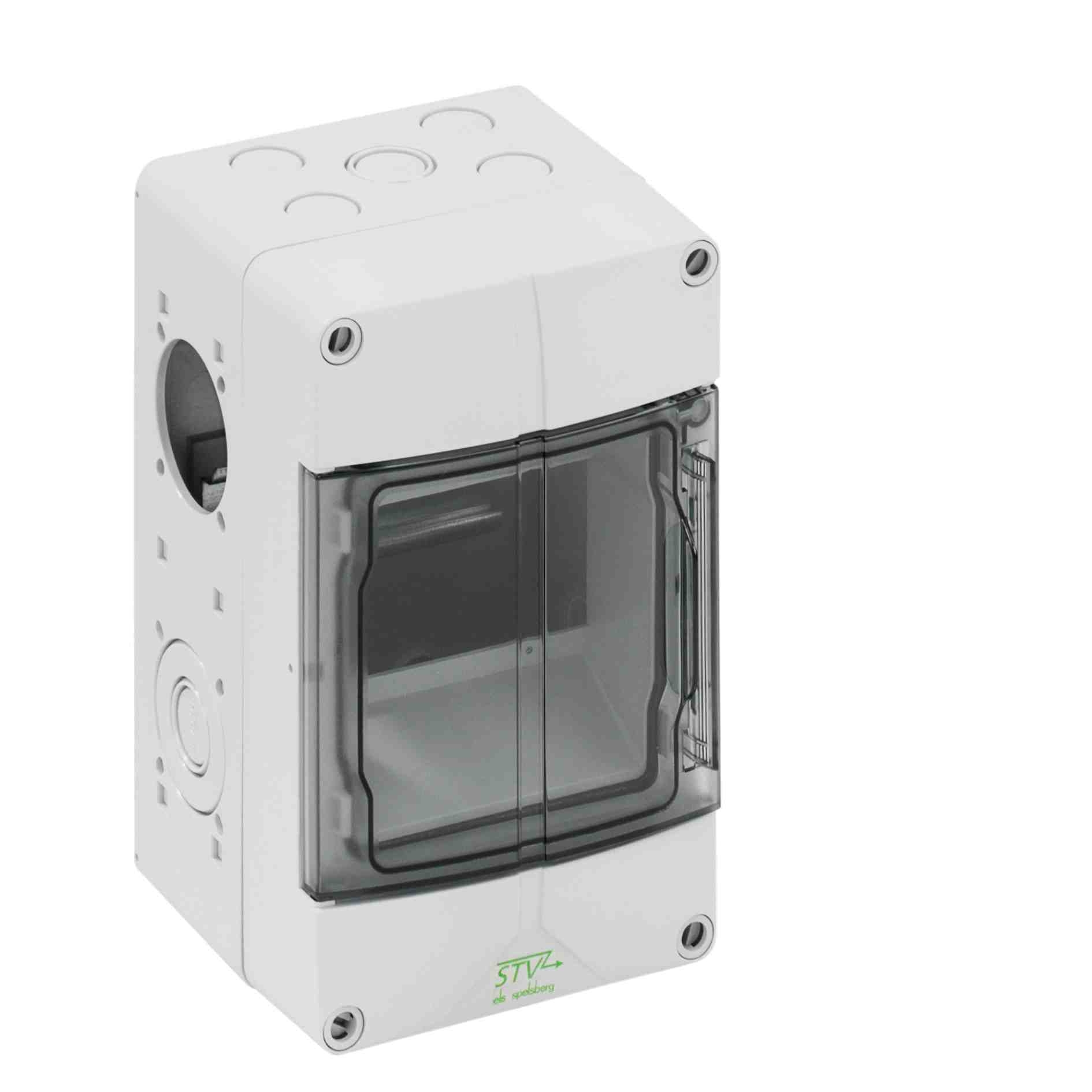 Spelsberg STV 502-L Prázdná zásuvková skříň, druh krytí IP44, 4 Mod., rázová houževnatost IK08, třída ochrany II, Jmenovité izolační napětí 400V AC, bez obsahu halogenů *72890201