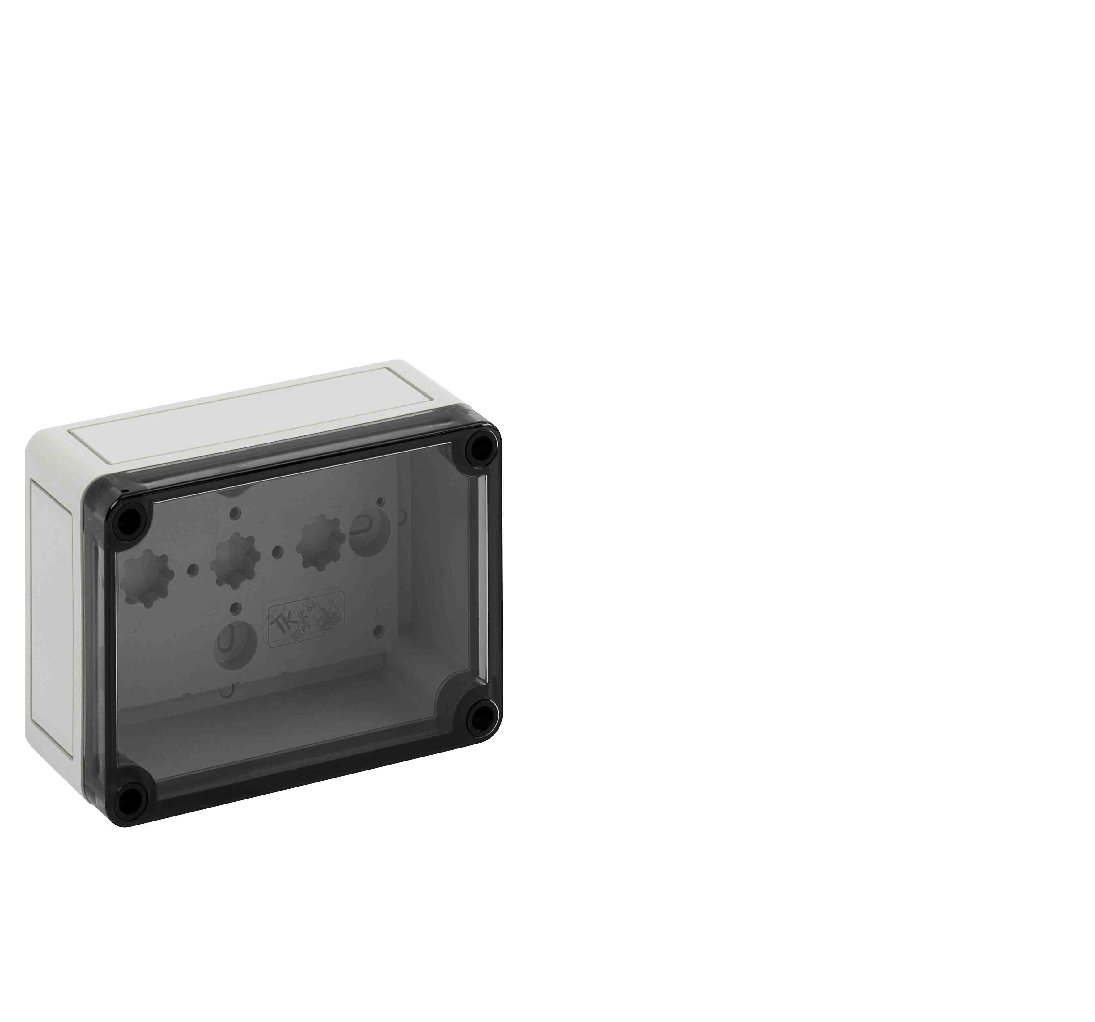 Prázdná skříň, se stupněm krytí IP66, polystyren, Ui=690V AC, Ui=1000V DC, Vnitřní místa pro připevnění, pro standardní instalace ve vnitřním prostoru, Krabice: polystyren, šedá, Víko: polykarbonát, transparenti, hladké boky Rozměry: 130 x 94 x 57 mm