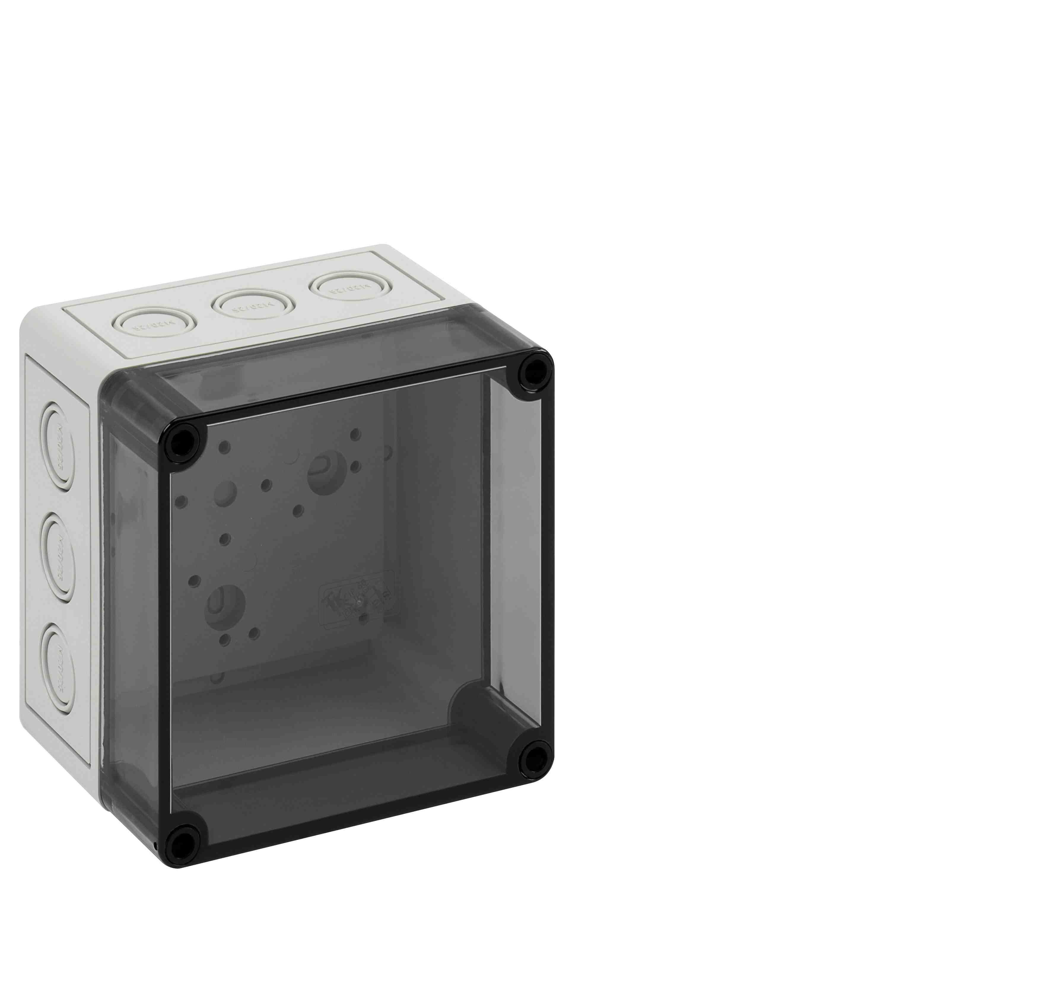 Prázdná skříň, se stupněm krytí IP66, polystyren, Ui=690V AC, Ui=1000V DC, Vnitřní místa pro připevnění, pro standardní instalace ve vnitřním prostoru, Krabice: polystyren, šedá, Víko: polykarbonát, transparenti, Vyrážecí membrány, M20/M25/M32, (12 bočně) Rozměry: 130 x 130 x 99 mm