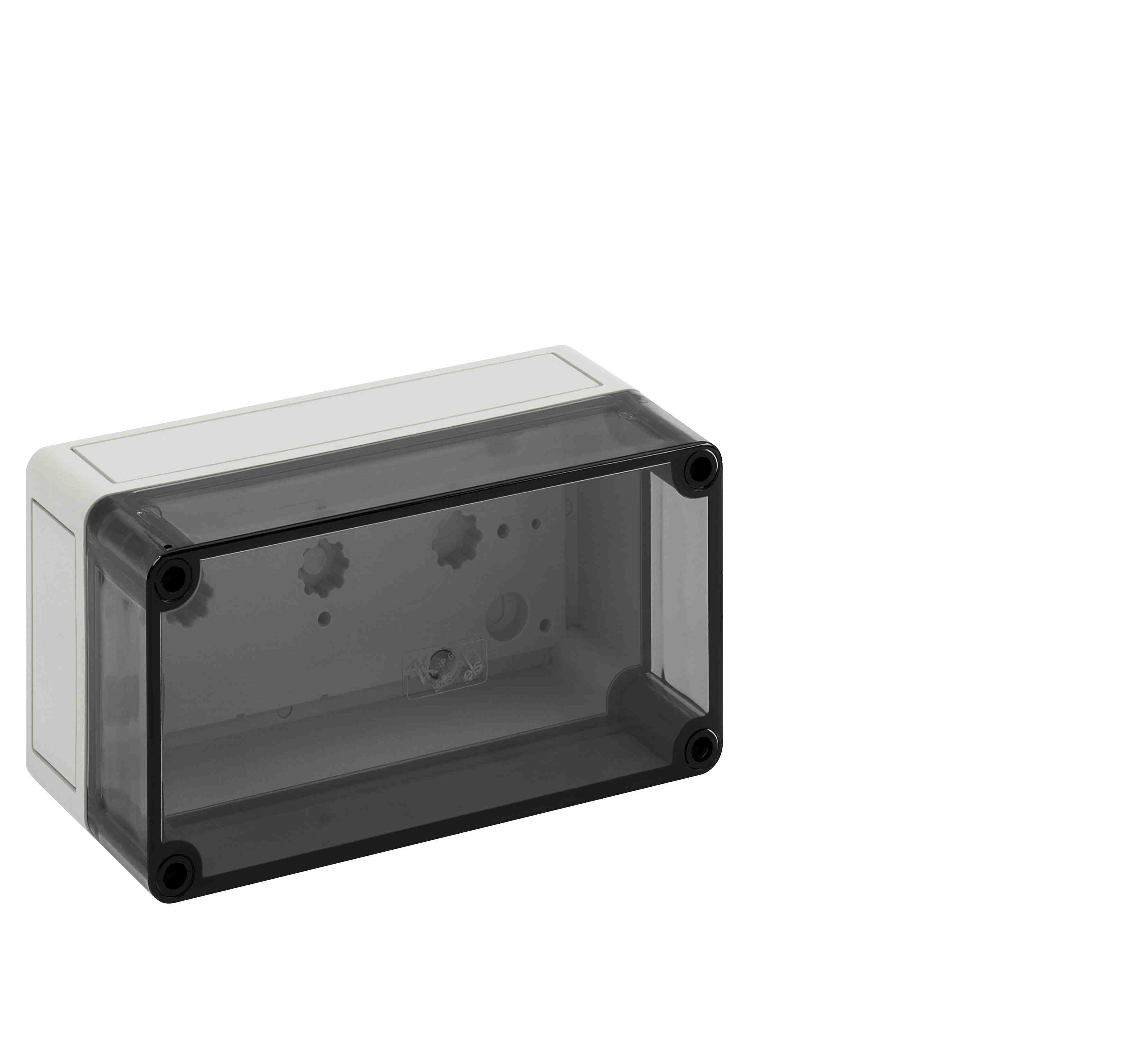 Prázdná skříň, se stupněm krytí IP66, polystyren, Ui=690V AC, Ui=1000V DC, Vnitřní místa pro připevnění, pro standardní instalace ve vnitřním prostoru, Krabice: polystyren, šedá, Víko: polykarbonát, transparenti, hladké boky Rozměry: 180 x 94 x 81 mm