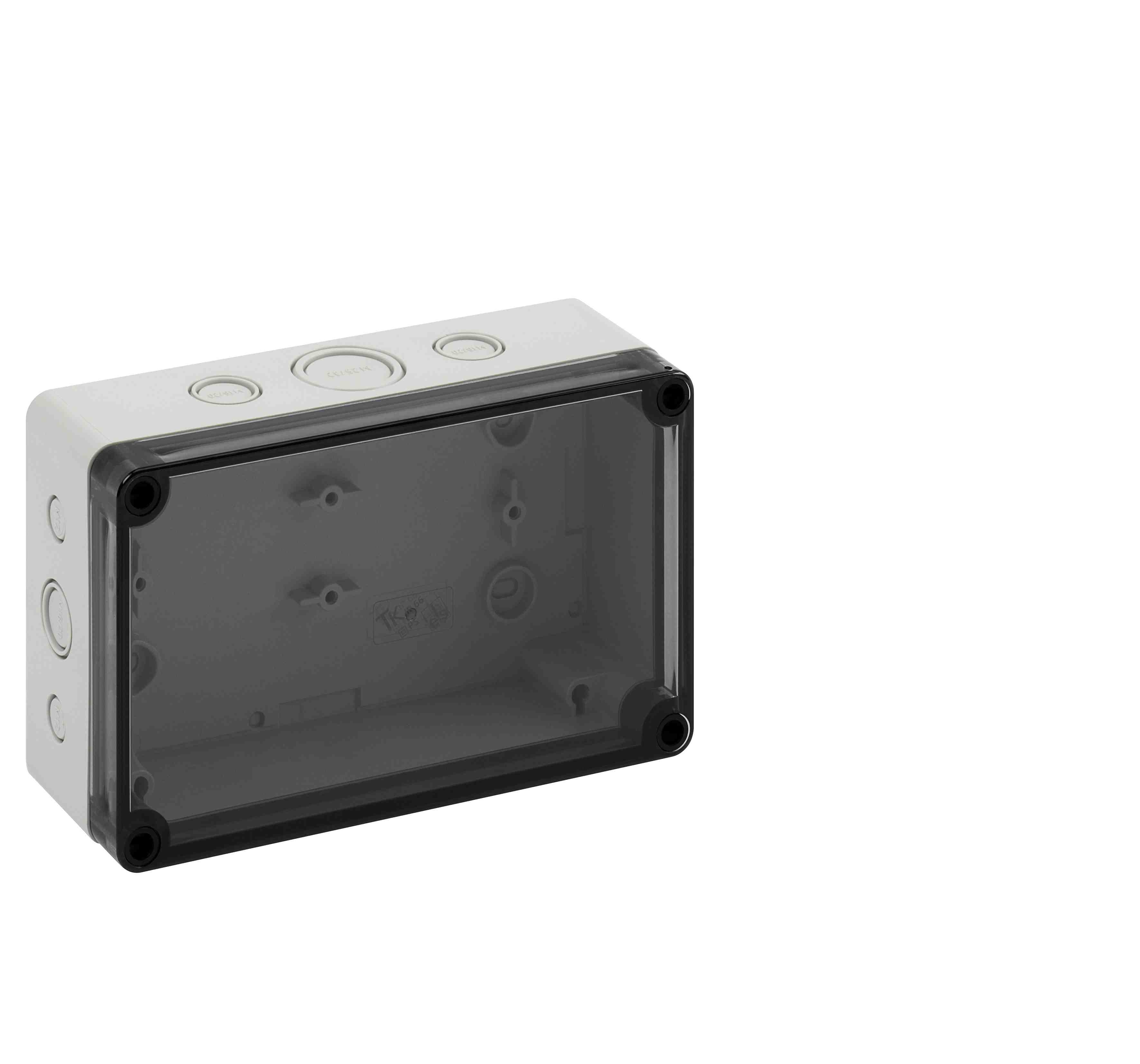 Prázdná skříň, se stupněm krytí IP66, polystyren, Ui=690V AC, Ui=1000V DC, Vnitřní místa pro připevnění, pro standardní instalace ve vnitřním prostoru, Krabice: polystyren, šedá, Víko: polykarbonát, transparenti, Vyrážecí membrány, M12/M16/M20/M25/M32, (12 bočně) Rozměry: 180 x 110 x 63 mm