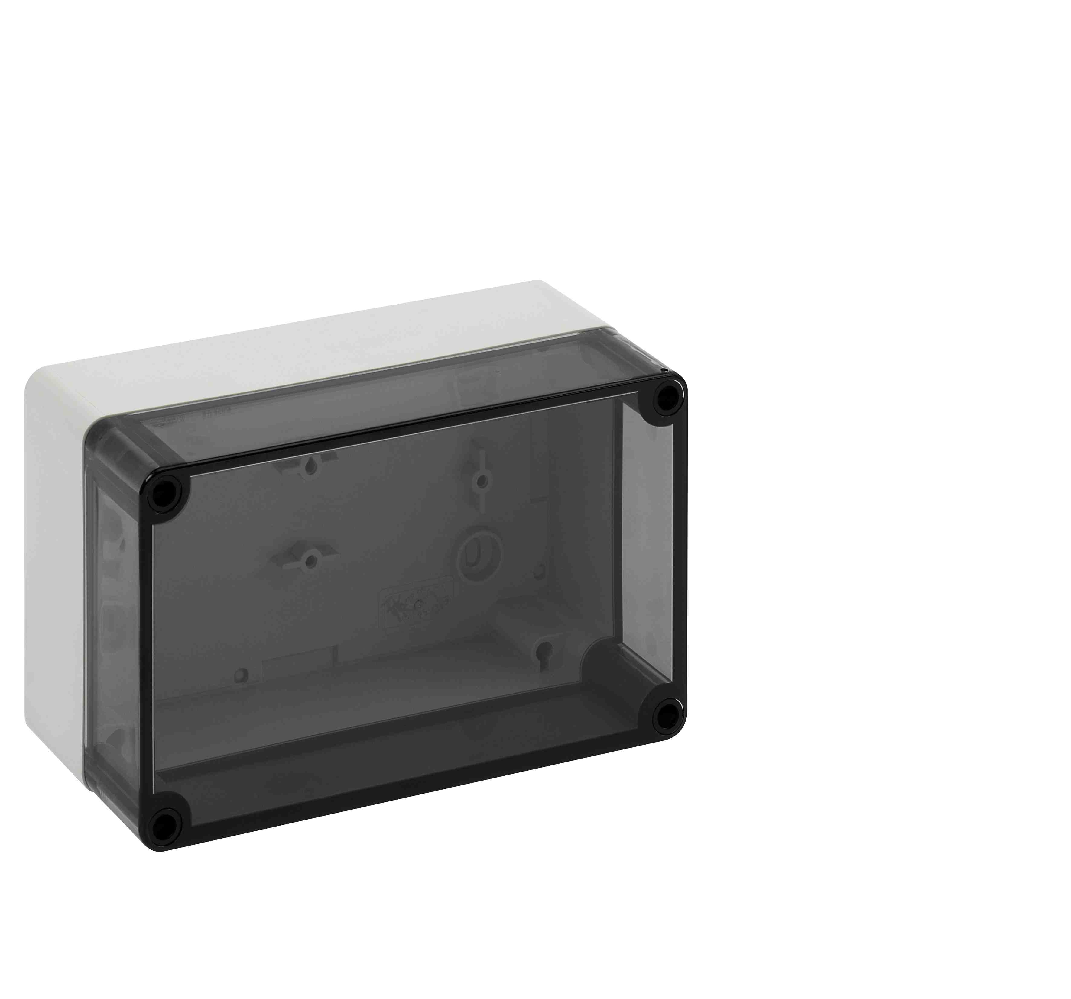 Prázdná skříň, se stupněm krytí IP66, polystyren, Ui=690V AC, Ui=1000V DC, Vnitřní místa pro připevnění, pro standardní instalace ve vnitřním prostoru, Krabice: polystyren, šedá, Víko: polykarbonát, transparenti, hladké boky Rozměry: 180 x 110 x 84 mm