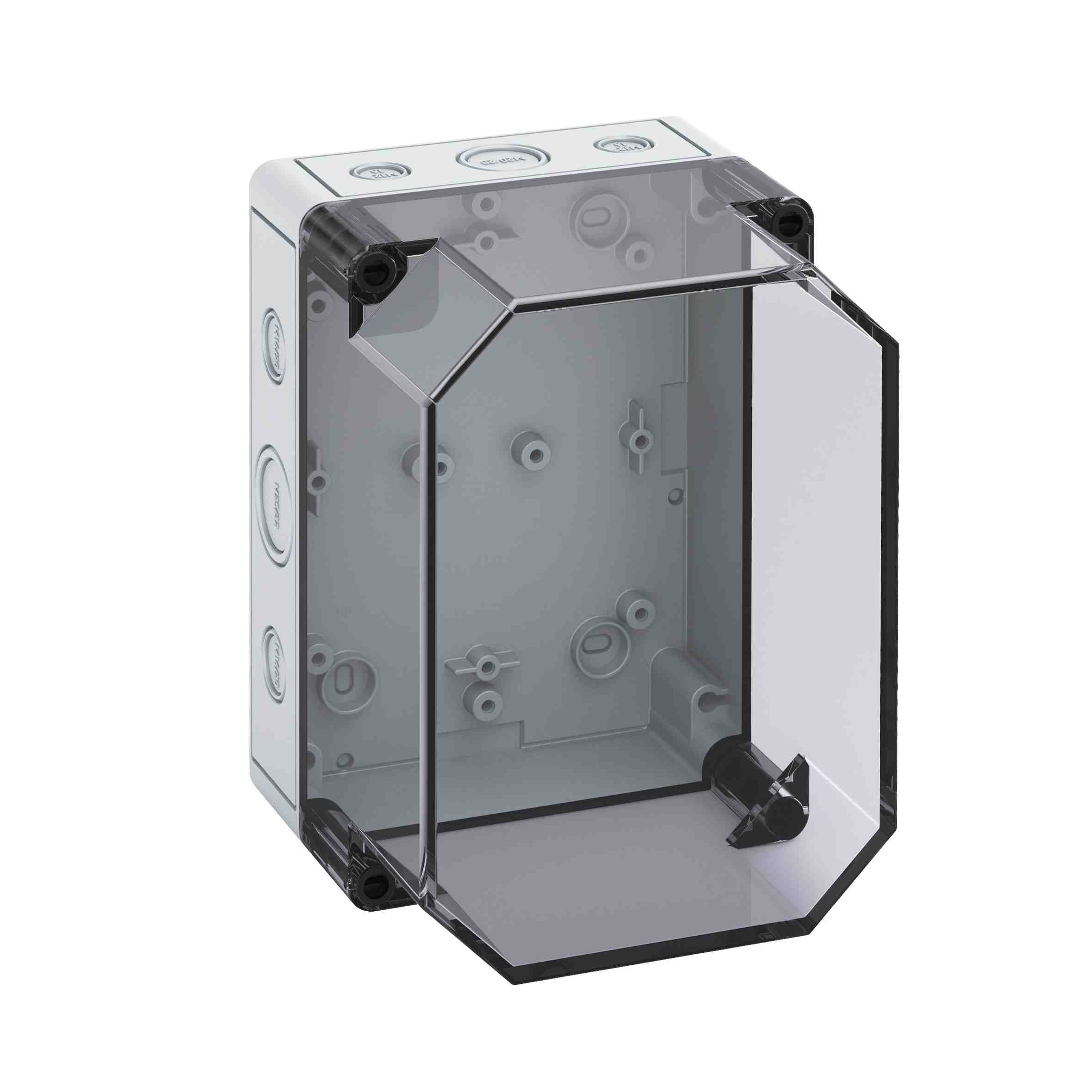 Prázdná skříň, se stupněm krytí IP66, polystyren, Ui=690V AC, Ui=1000V DC, Vnitřní místa pro připevnění, pro standardní instalace ve vnitřním prostoru, Krabice: polystyren, šedá, Víko: polykarbonát, transparenti, Vyrážecí membrány, M12/M16/M20/M25/M32, (14 bočně) Rozměry: 180 x 130 x 137 mm