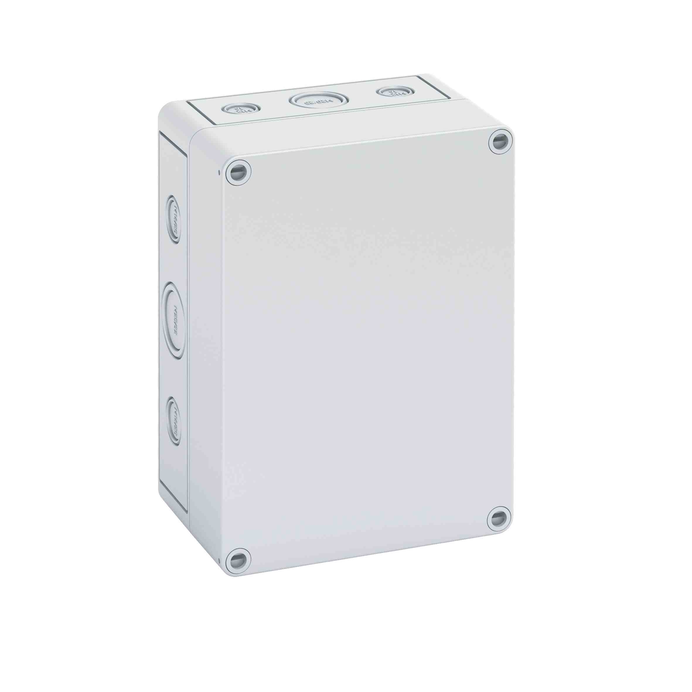 Prázdná skříň, se stupněm krytí IP66, polystyren, Ui=690V AC, Ui=1000V DC, Vnitřní místa pro připevnění, pro standardní instalace ve vnitřním prostoru, Krabice: polystyren, šedá, Víko: polystyren, šedá, Vyrážecí membrány, M12/M16/M20/M25/M32, (14 bočně) Rozměry: 180 x 130 x 84 mm