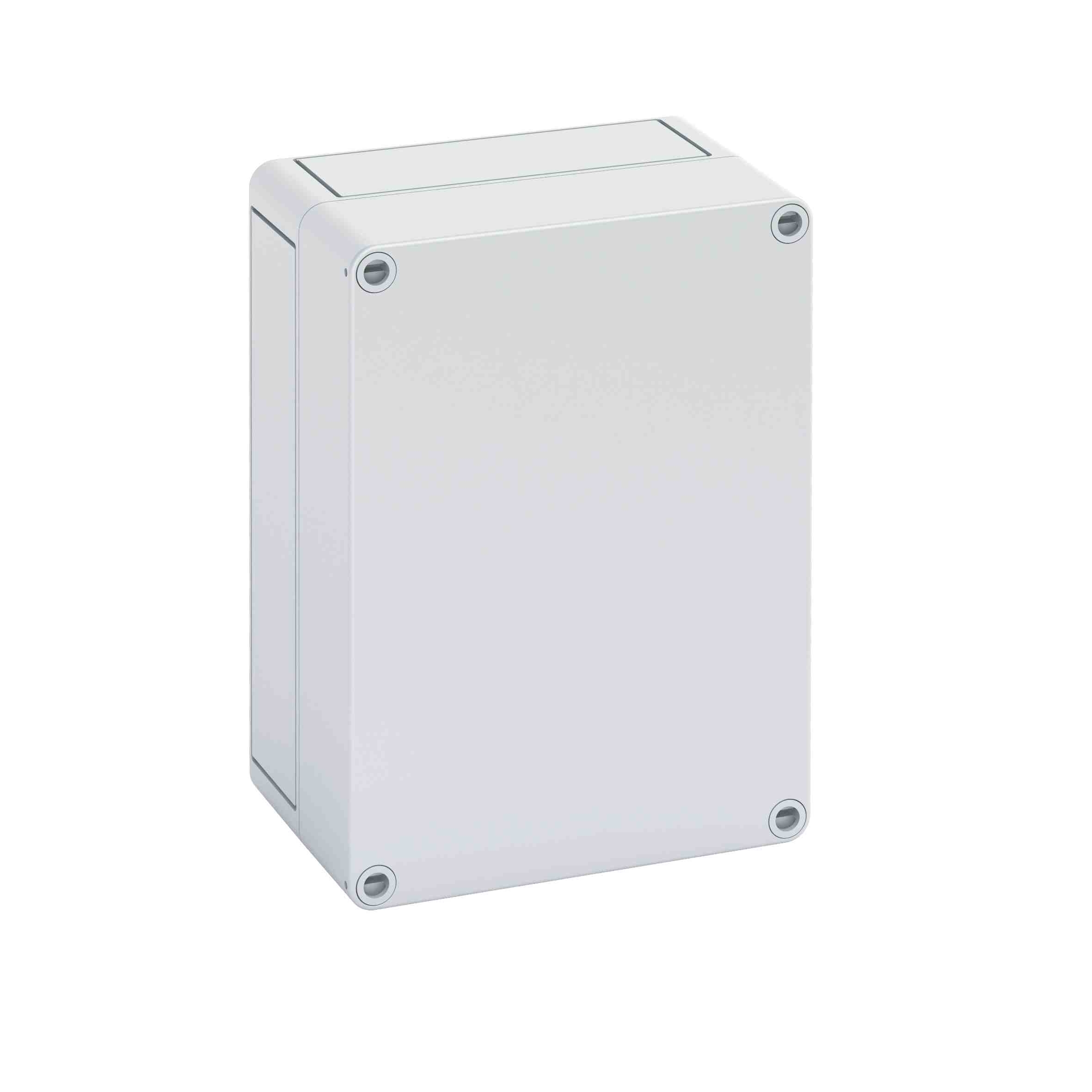 Prázdná skříň, se stupněm krytí IP66, polystyren, Ui=690V AC, Ui=1000V DC, Vnitřní místa pro připevnění, pro standardní instalace ve vnitřním prostoru, Krabice: polystyren, šedá, Víko: polystyren, šedá, hladké boky Rozměry: 180 x 130 x 84 mm