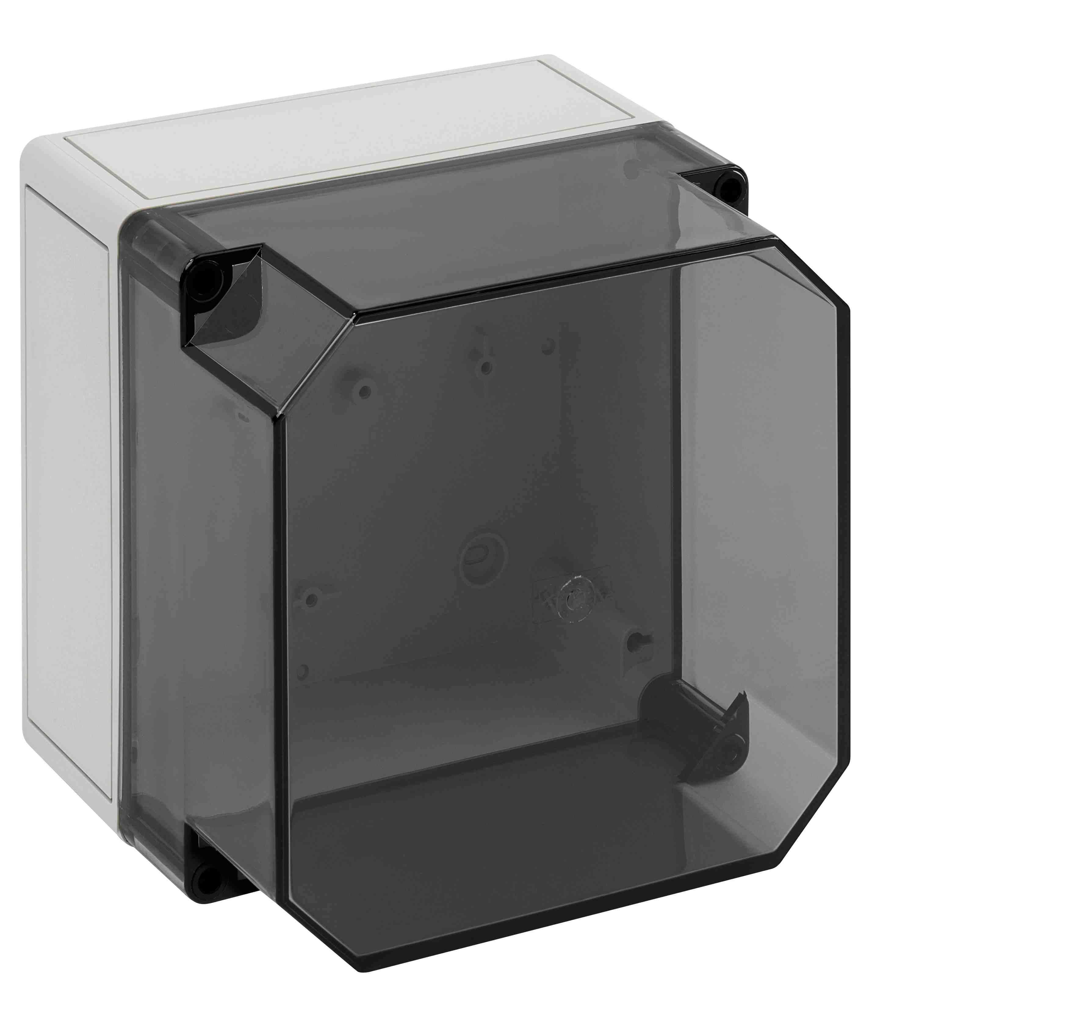 Prázdná skříň, se stupněm krytí IP66, polystyren, Ui=690V AC, Ui=1000V DC, Vnitřní místa pro připevnění, pro standardní instalace ve vnitřním prostoru, Krabice: polystyren, šedá, Víko: polykarbonát, transparenti, hladké boky Rozměry: 182 x 180 x 165 mm